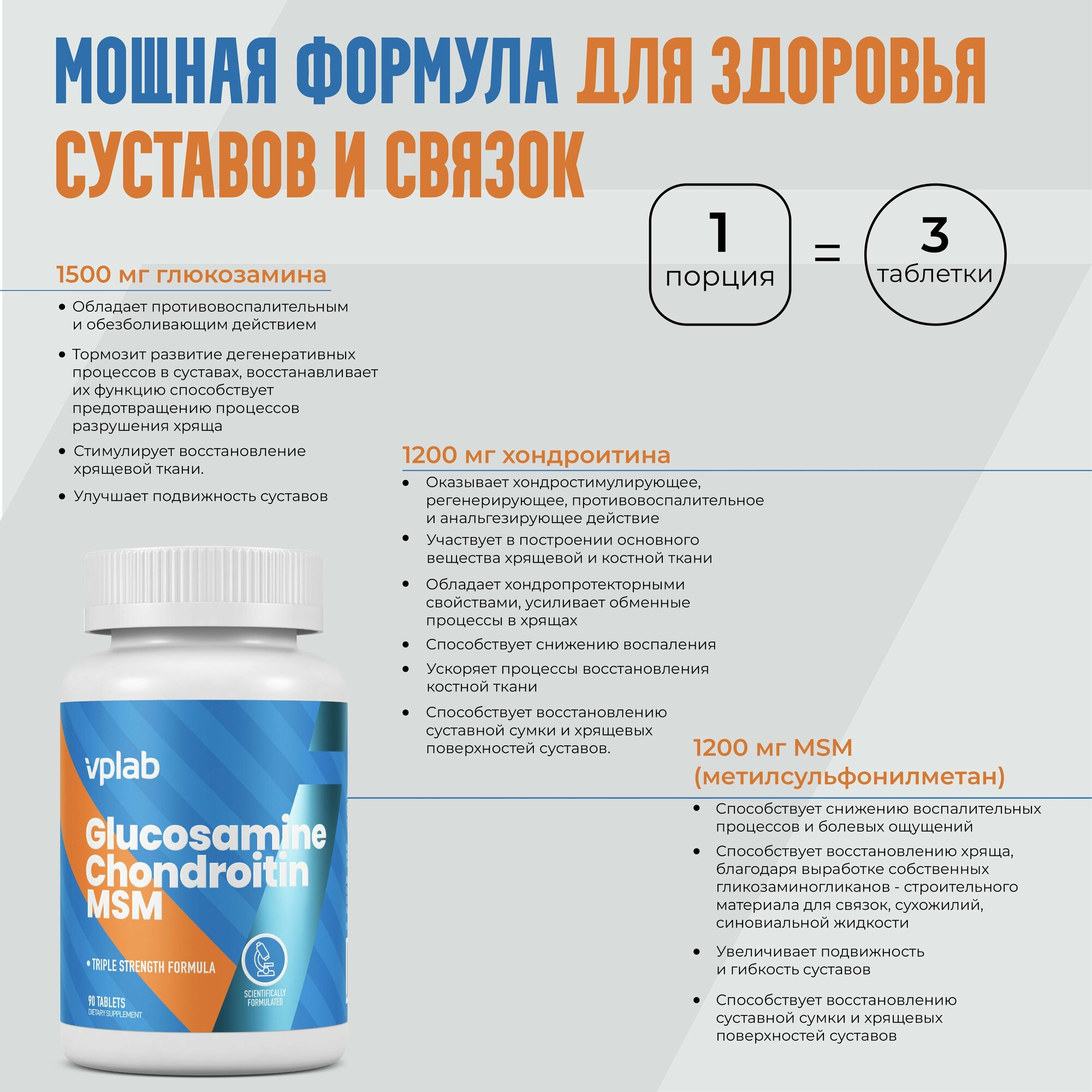 Глюкозамин и Хондроитин VP Laboratory Glucosamine Chondroitin MSM 90 таб интересное: