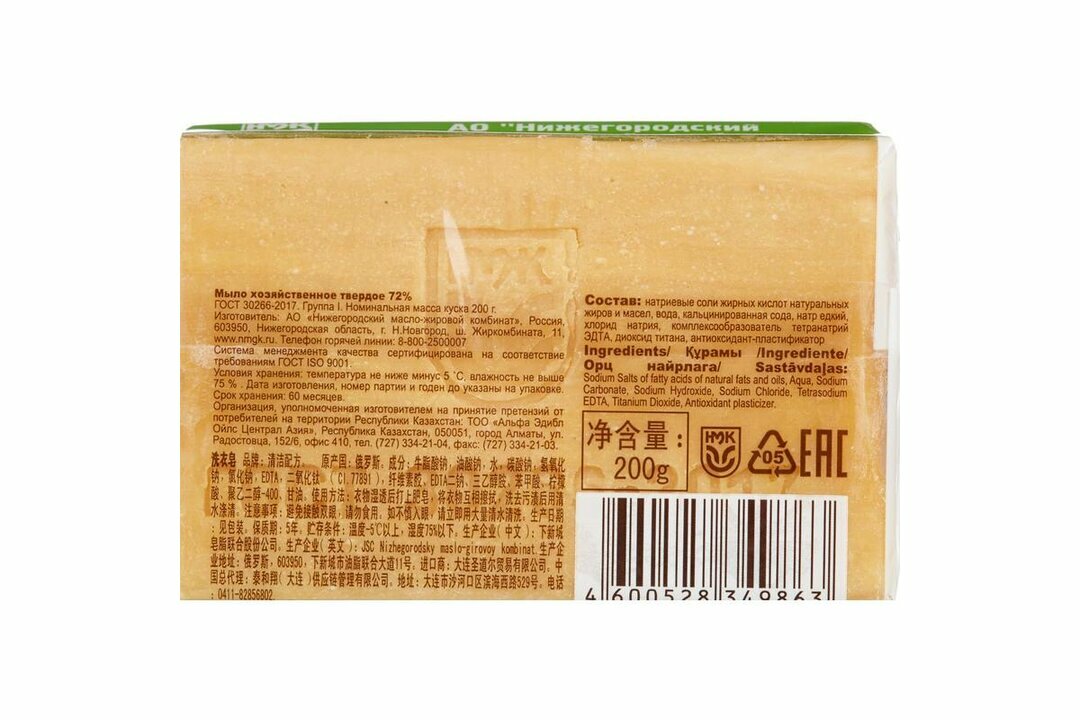 Нмжк, Мыло хозяйственное кусковое 72%, 200 г
