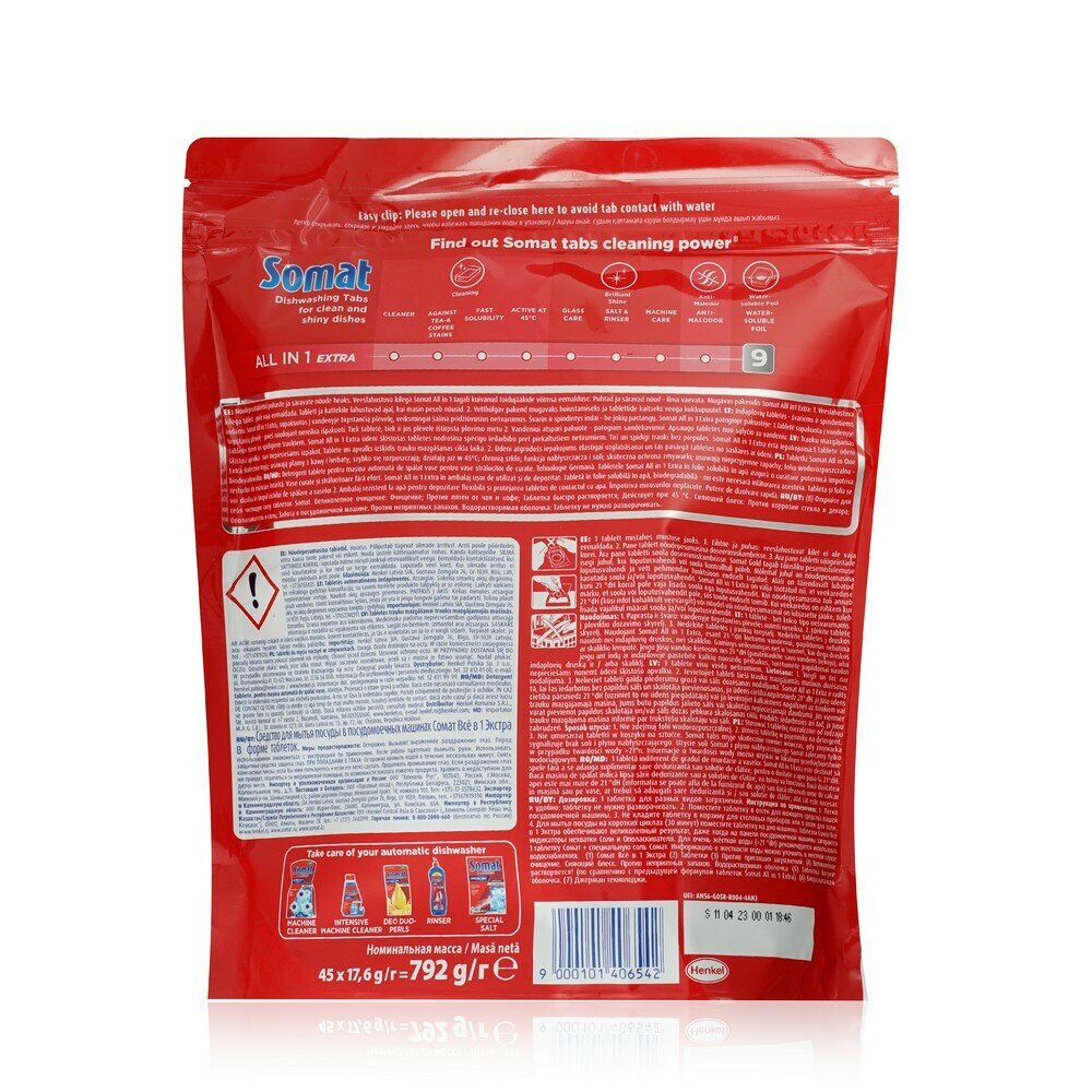 Somat All in 1 Extra, Таблетки для посудомоечной машины, мультифункциональное средство для мытья посуды в посудомойке в форме таблеток (45 таблеток)