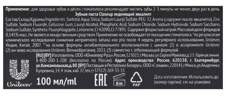 Зубная паста Closeup Леденящий эвкалипт, 100 мл интересное: