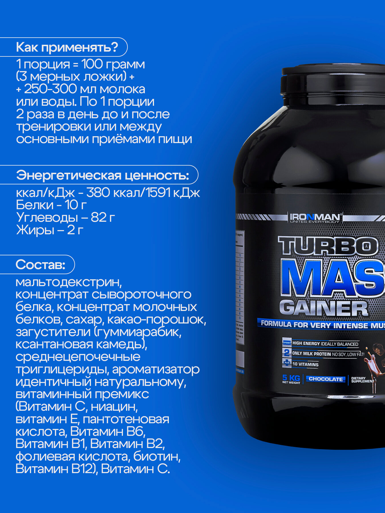 IRONMAN Гейнер TURBO Mass, вкус "Шоколад", 5 кг, IRONMAN