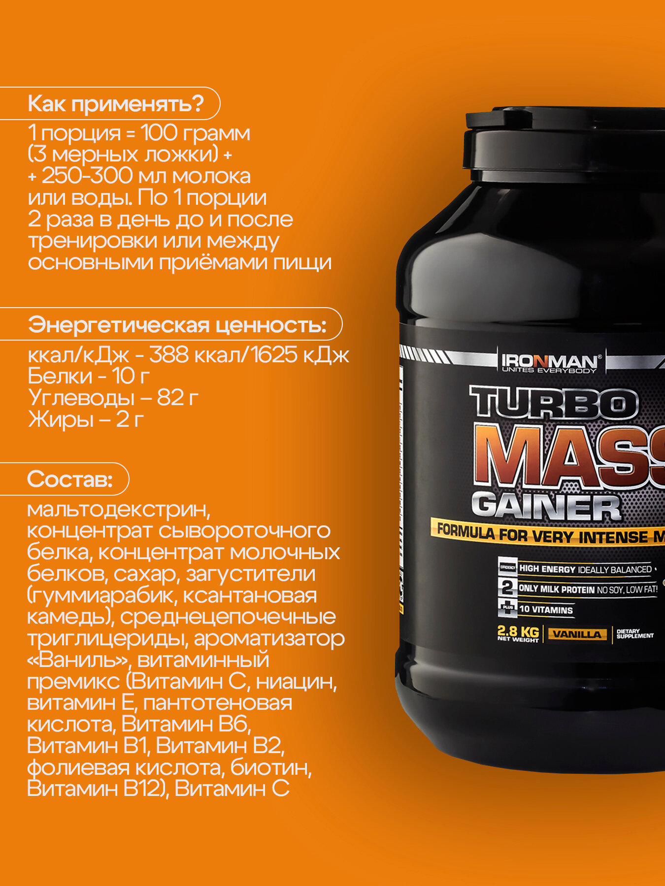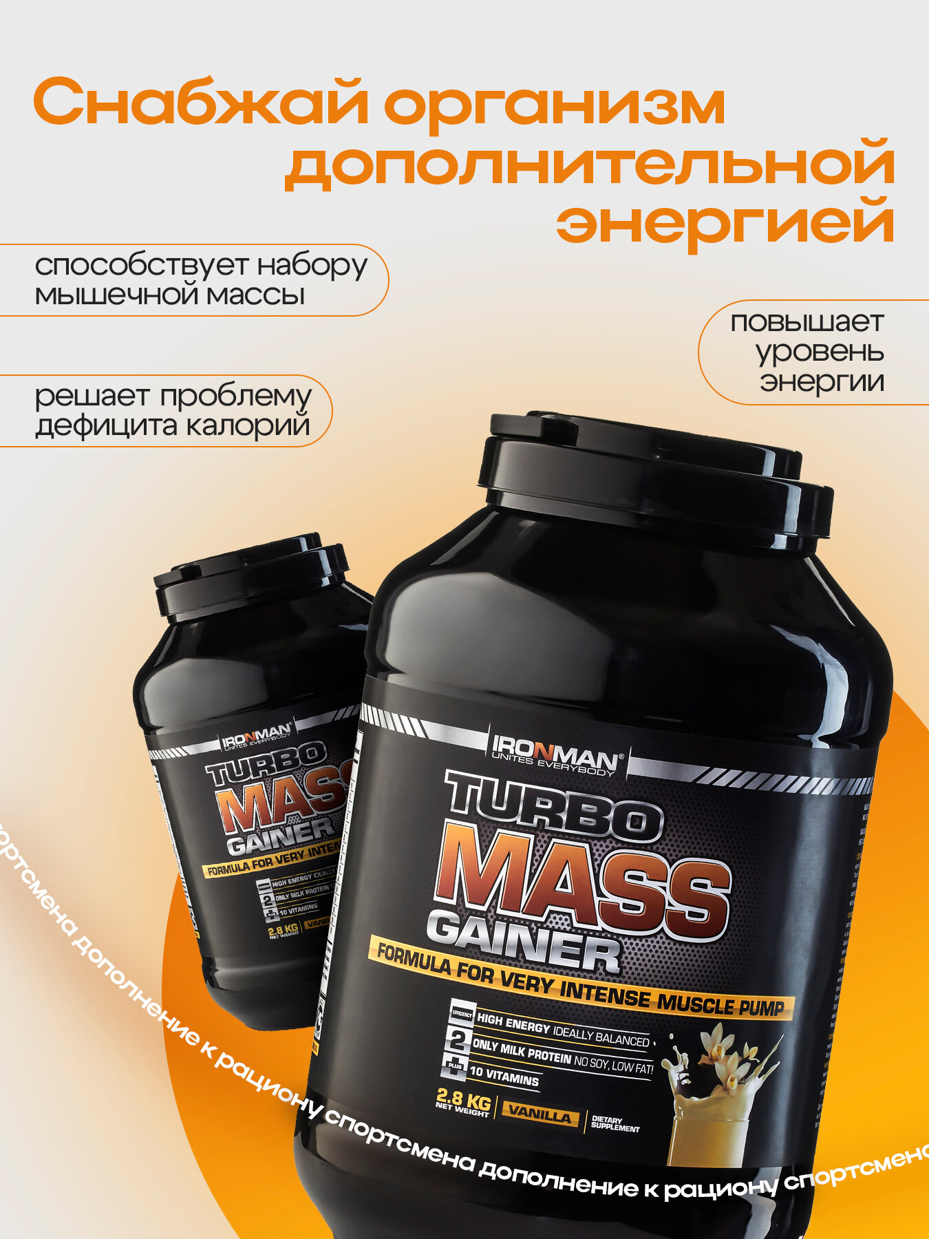 IRONMAN Гейнер TURBO Mass, вкус "Ваниль", 2,8 кг, IRONMAN