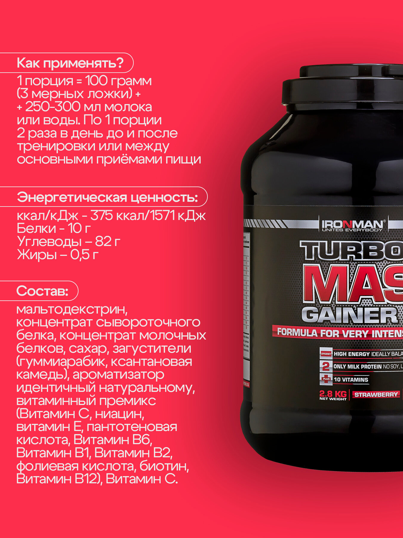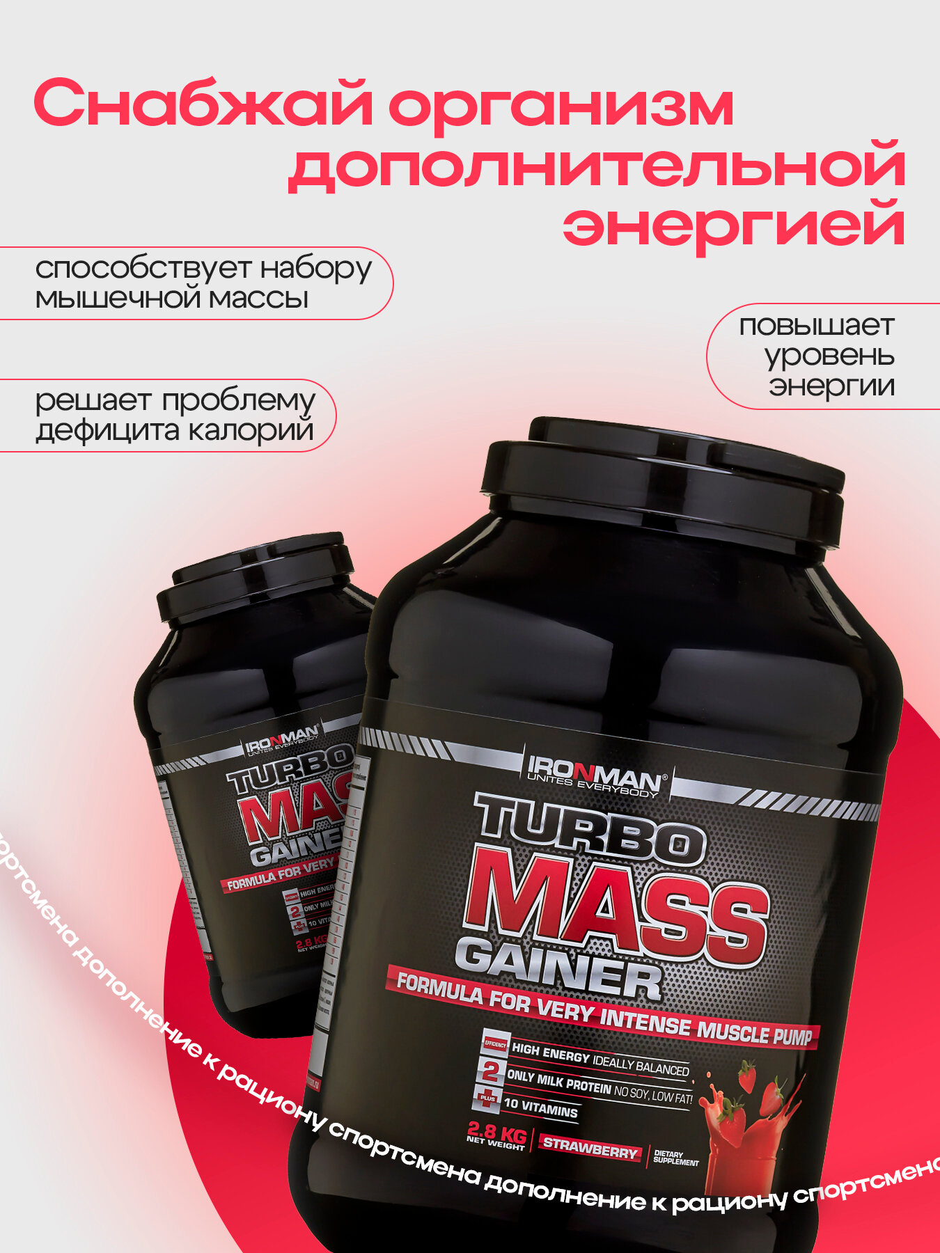 IRONMAN Гейнер TURBO Mass, вкус "Земляника", 2,8 кг, IRONMAN