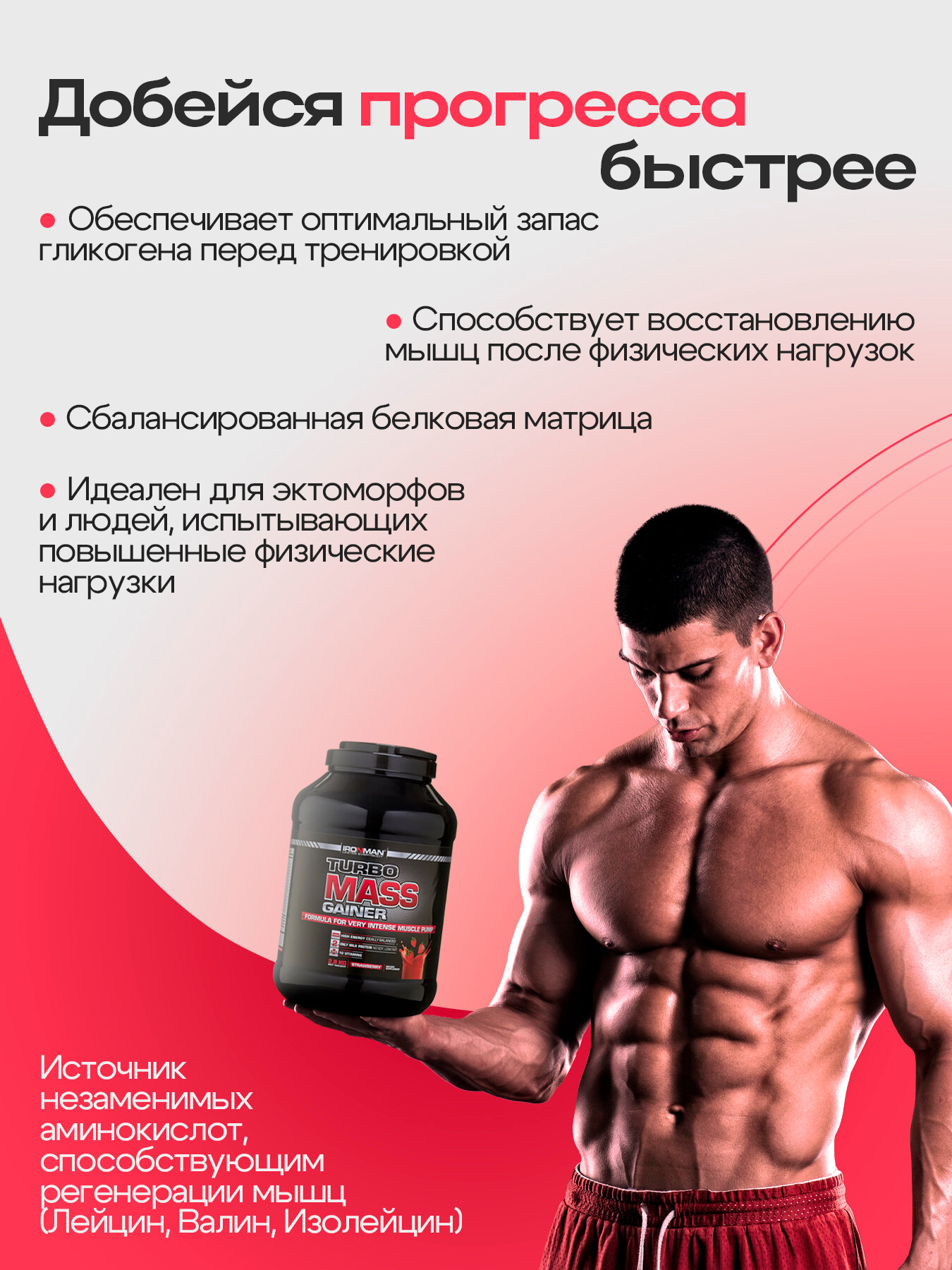 Купить Турбо Масс Гейнер для набора массы и веса Земляника 2,8кг