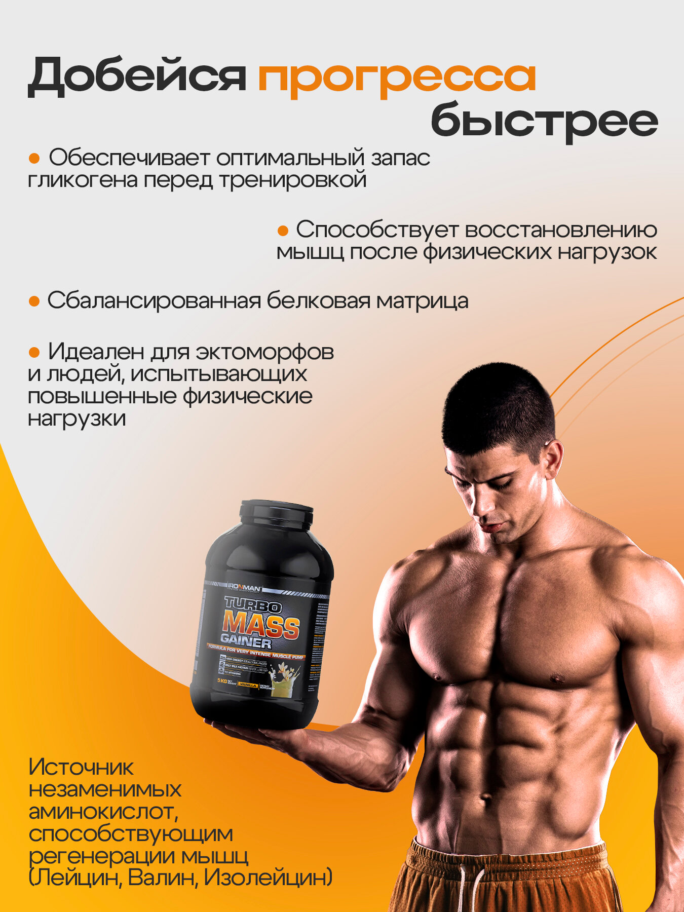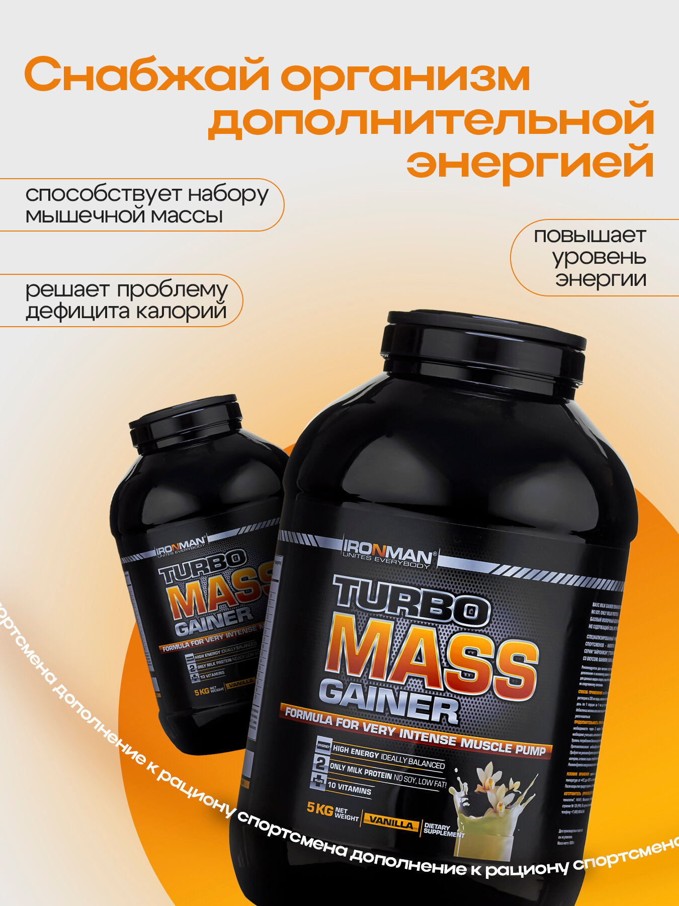 Россия "IRONMAN" Турбо Масс Гейнер (банка 5 кг) ваниль