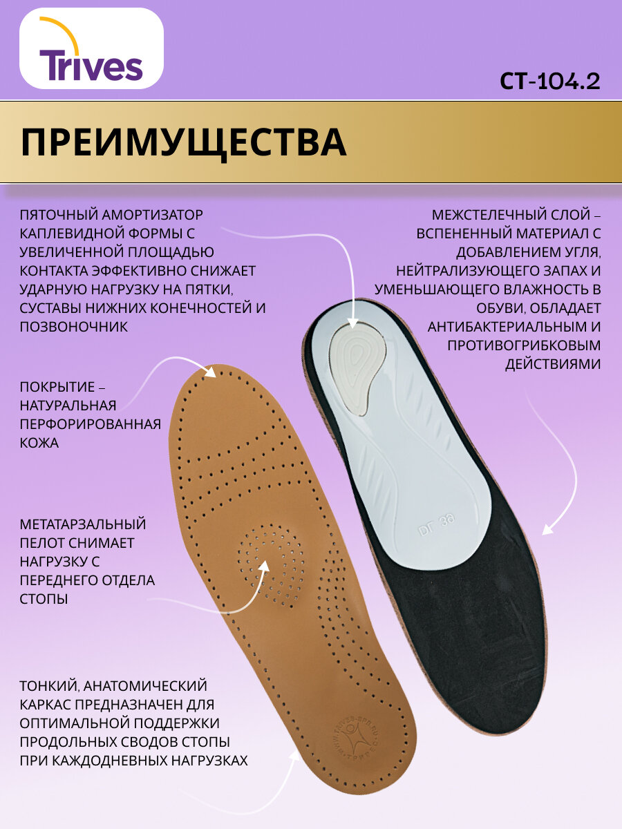 Стельки ортопедические "Trives" СТ-104.1 м/ж (на полужест.основе, натуральная кожа)