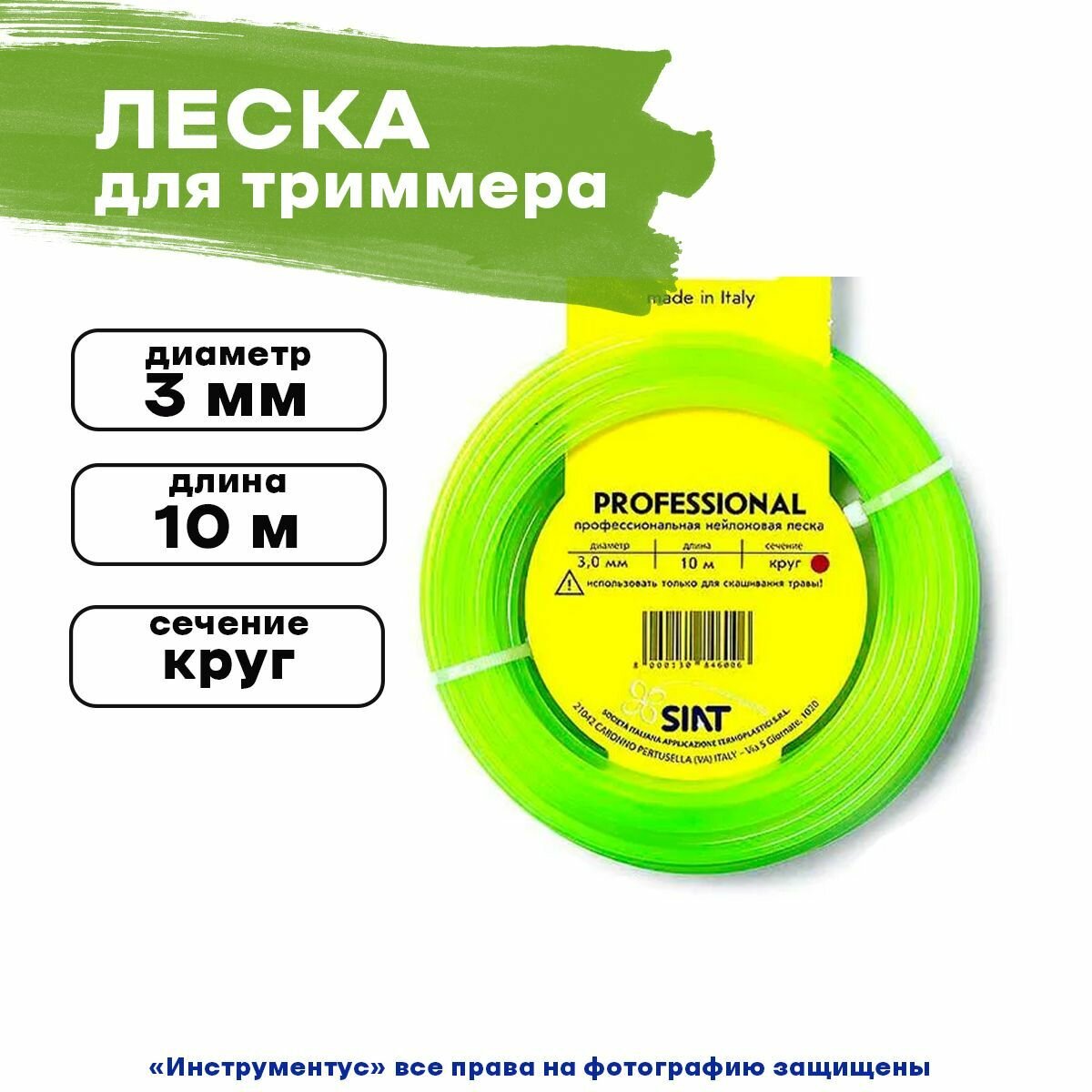Леска для триммера SIAT Professional 3мм х10м, сечение круг