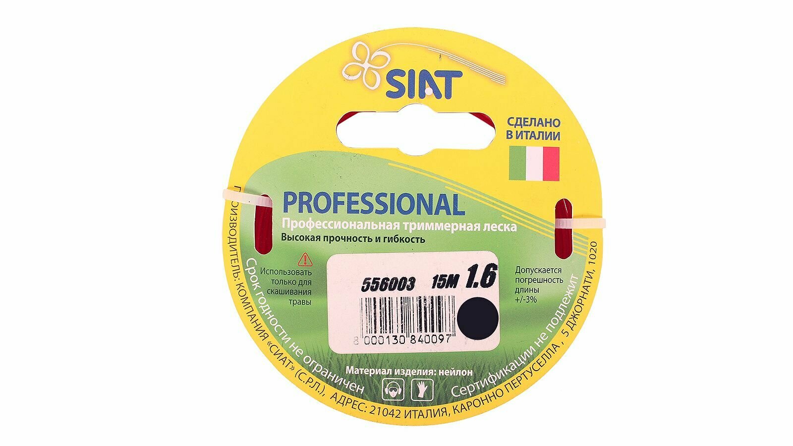 Леска (круг; диаметр 1.6 мм; длина 15 м) для триммера Professional SIAT 556003