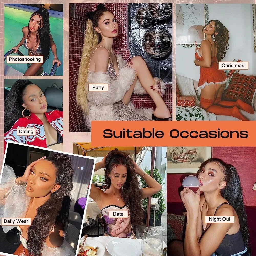 Накладные волосы для конского хвоста, 18 дюймов, короткий Когтевран, искусственный конский хвост, мягкие волнистые кудрявые синтетические волосы для женщин, ежедневное искусственное черное, 27H613, 18 дюймов, 1 шт.