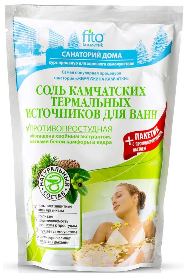 СохранитьСоль для ванн fito cosmetic Камчатских термальных источников Противопростудная 500г+30г интересное: