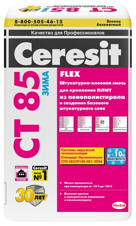 Церезит СТ-85 штукатурно-клеевая смесь для пенополистирола (25кг) зимний / CERESIT CT85 штукатурно-клеевая смесь для пенополистирола (25кг) зимний
