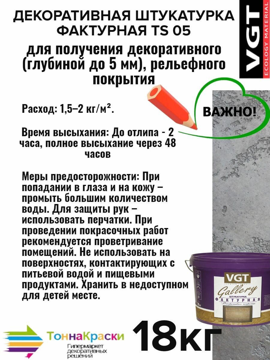 ВГТ штукатурка декоративная фактурная TS 05 (18кг) / VGT Gallery штукатурка декоративная фактурная для наружных и внутренних работ TS 05 (18кг)