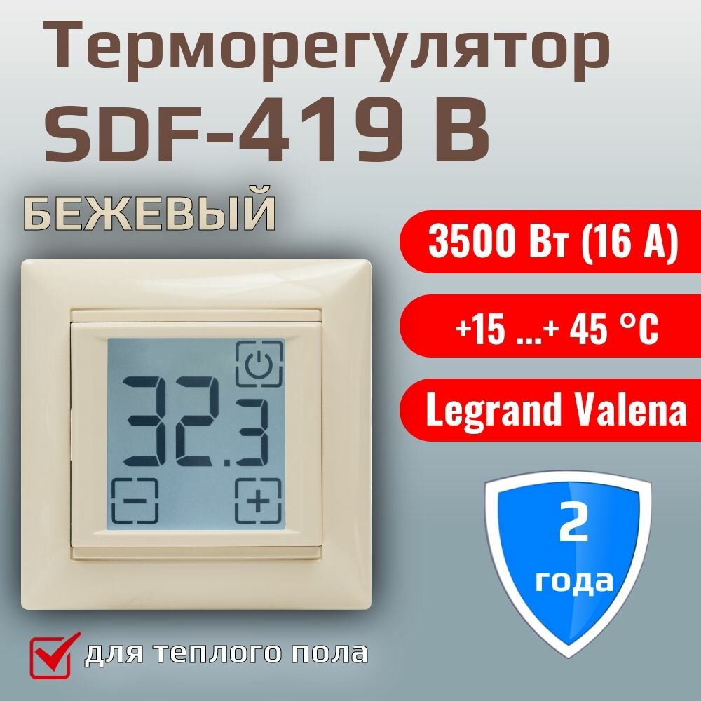 Купить Терморегулятор теплого пола сенсорный SpyHeat SDF-419B (встраиваемый) бежевый, под рамку Legrand Valena