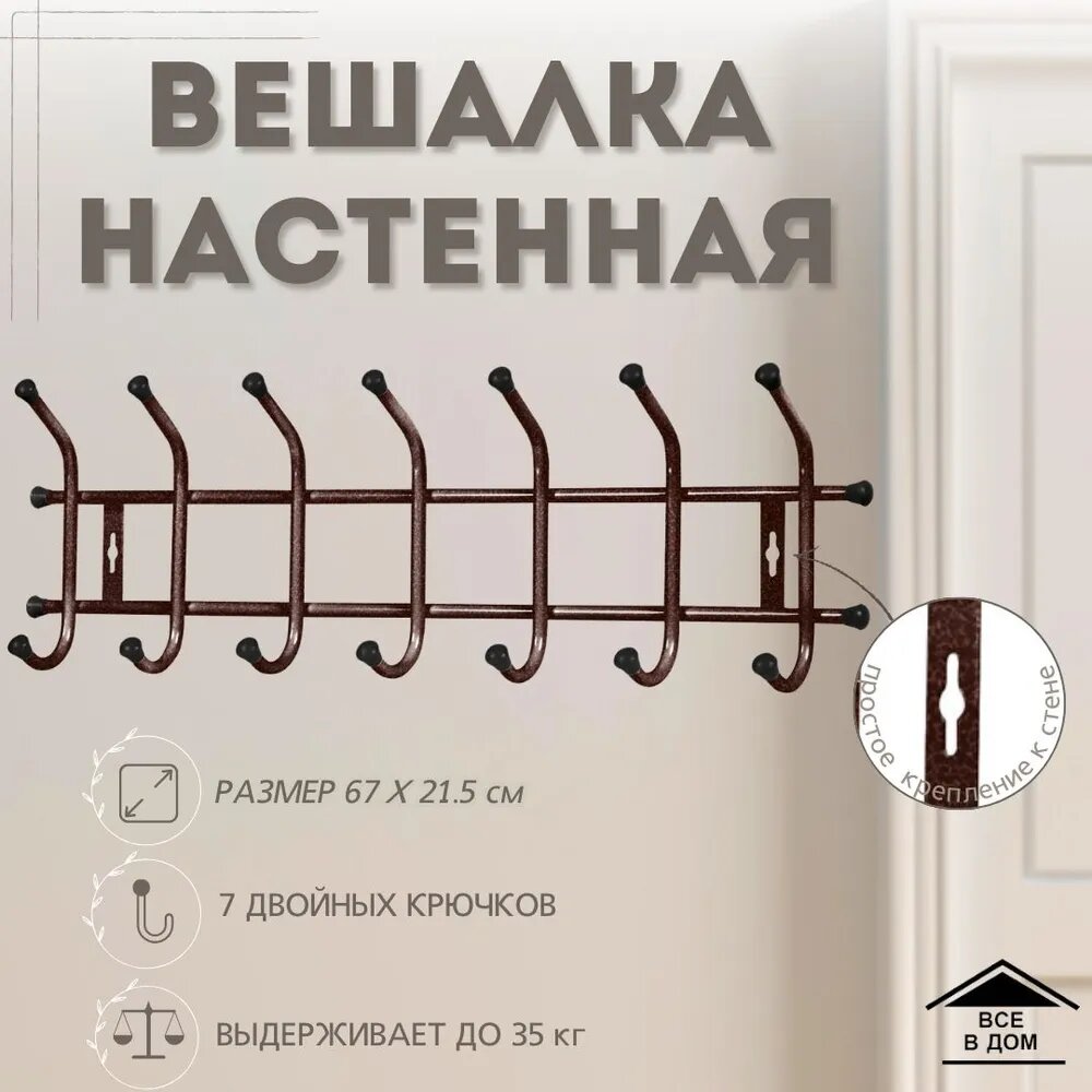 СохранитьВешалка металлическая настенная Ника 685х215х85мм, 7 крючков Медный антик ВНТ7/А интересное: