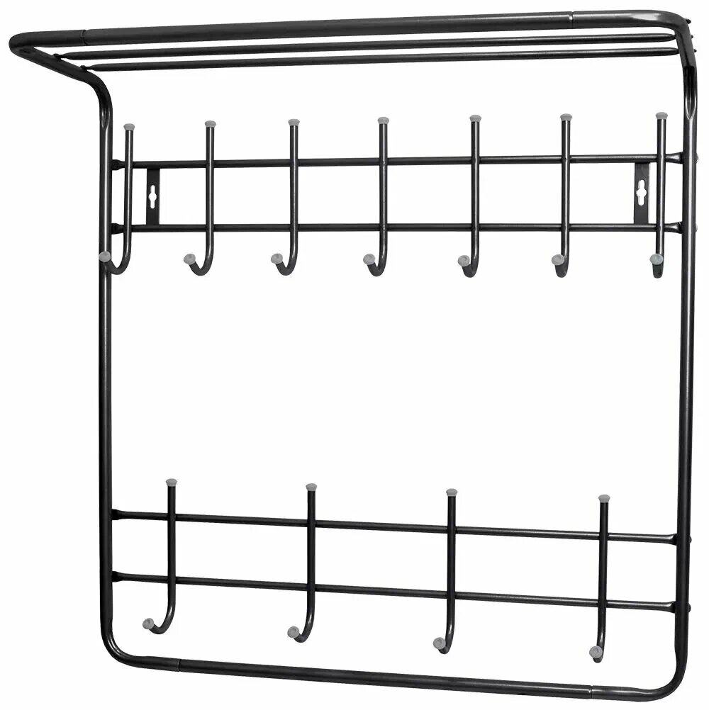 Вешалка настенная с полкой на 11 крючков, 74×25×74,5 см, цвет чёрный