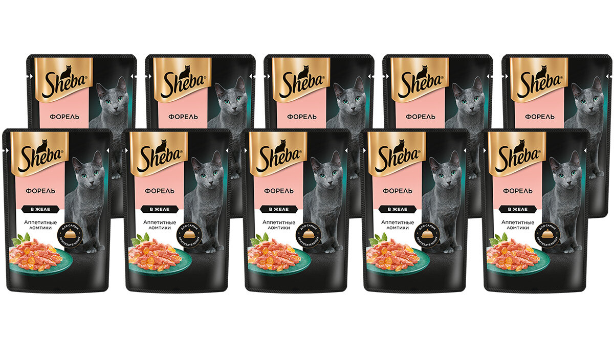Купить SHEBA для взрослых кошек ломтики в желе с форелью пауч 75 гр х 10 шт