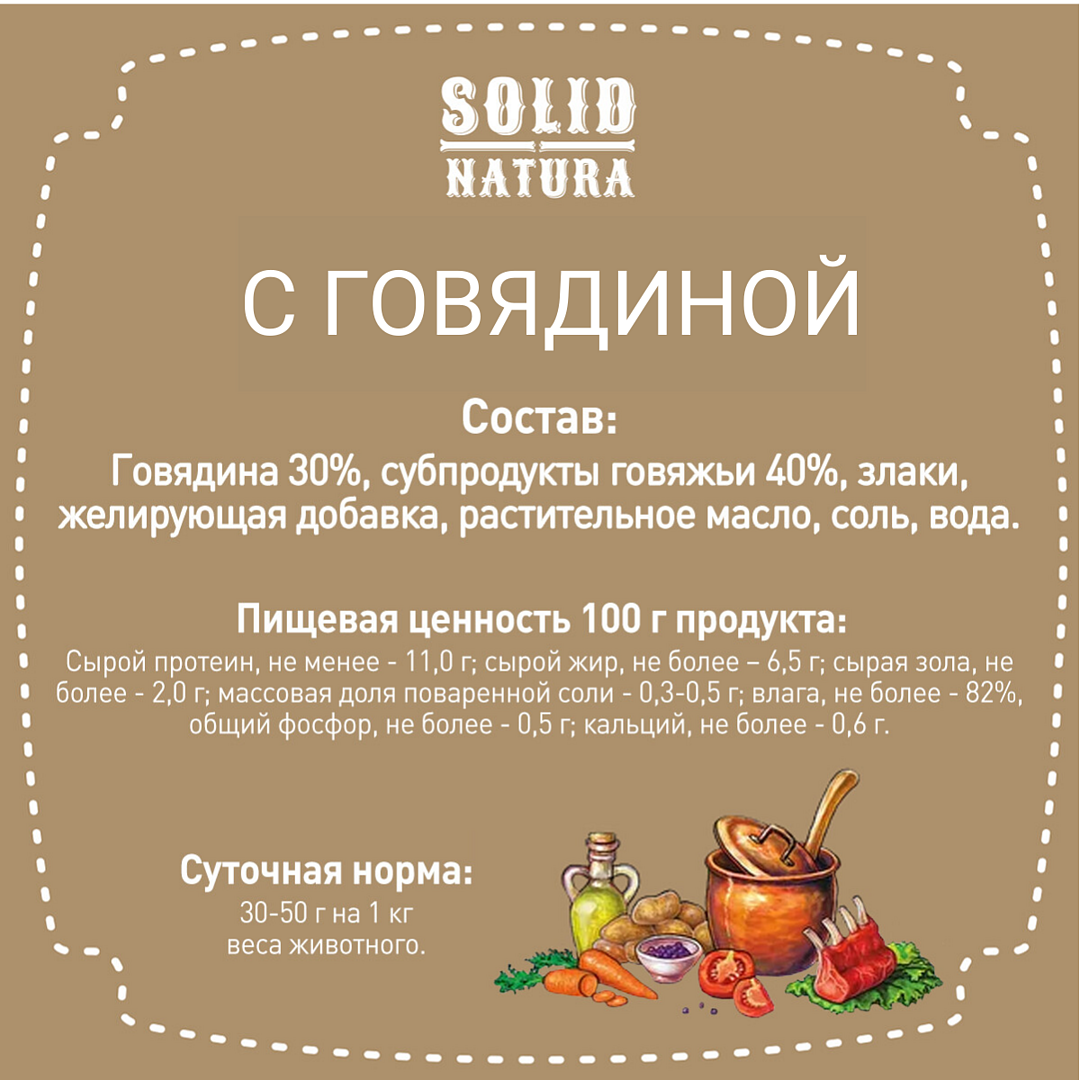 Купить Влажный корм для собак Solid Natura Говядина упаковка 6 шт х 340 г