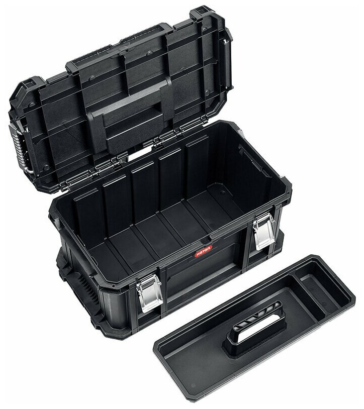 Объем, тележка, прочность ( при желании стоя на нем можно станцевать ) ну и еще не маловажный фактор это его герметичность и возможность скреплять с другими ящиками из аналогичной серии. |
