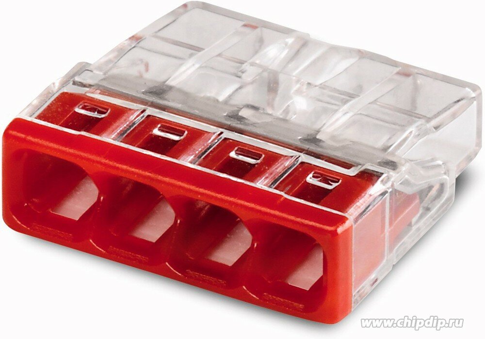 Wago 2273-244 Клемма 4-проводная (0,5-2,5 кв.мм) с пастой красная (1 шт)