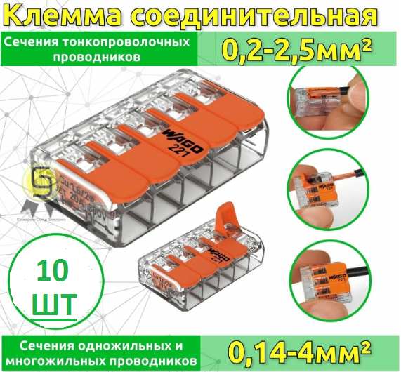 СохранитьКлемма 5-и проводная Wago 221-415, в комплекте 10 шт интересное: