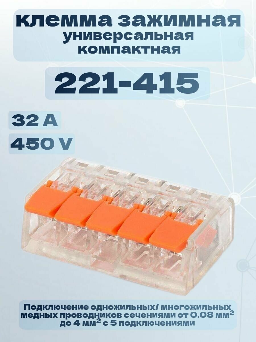 Клемма WAGO с рычагами 5-проводная 221-415, 25 шт.