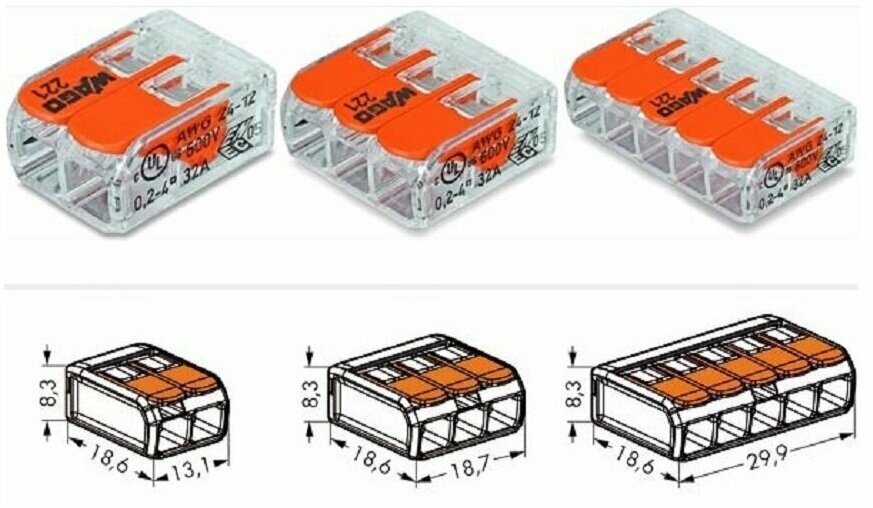 Клеммы для проводов зажимные, клемма 222-412 Электро (Аналог Wago/ ваго) - 50 шт