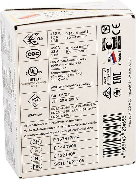 Соединительные клеммы для проводов 221-415, 20 шт.