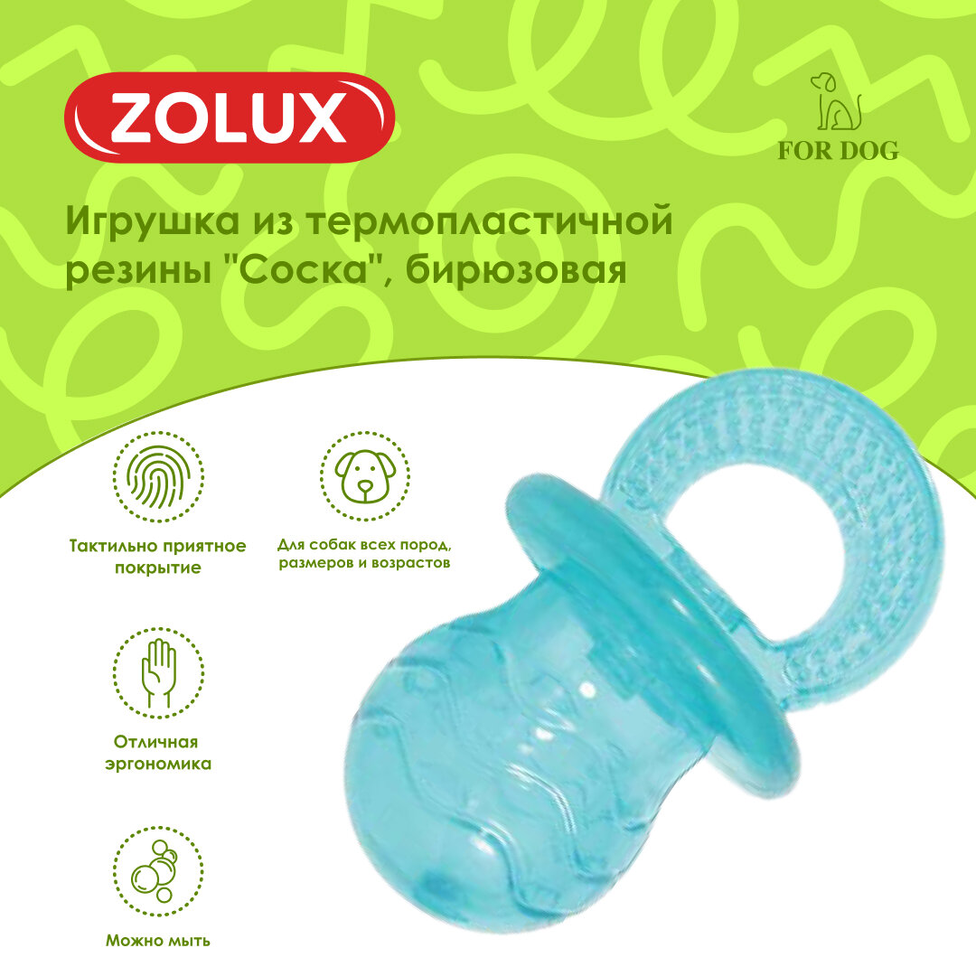 Zolux игрушка соска, термопластичная резина, 10 см, бирюзовая