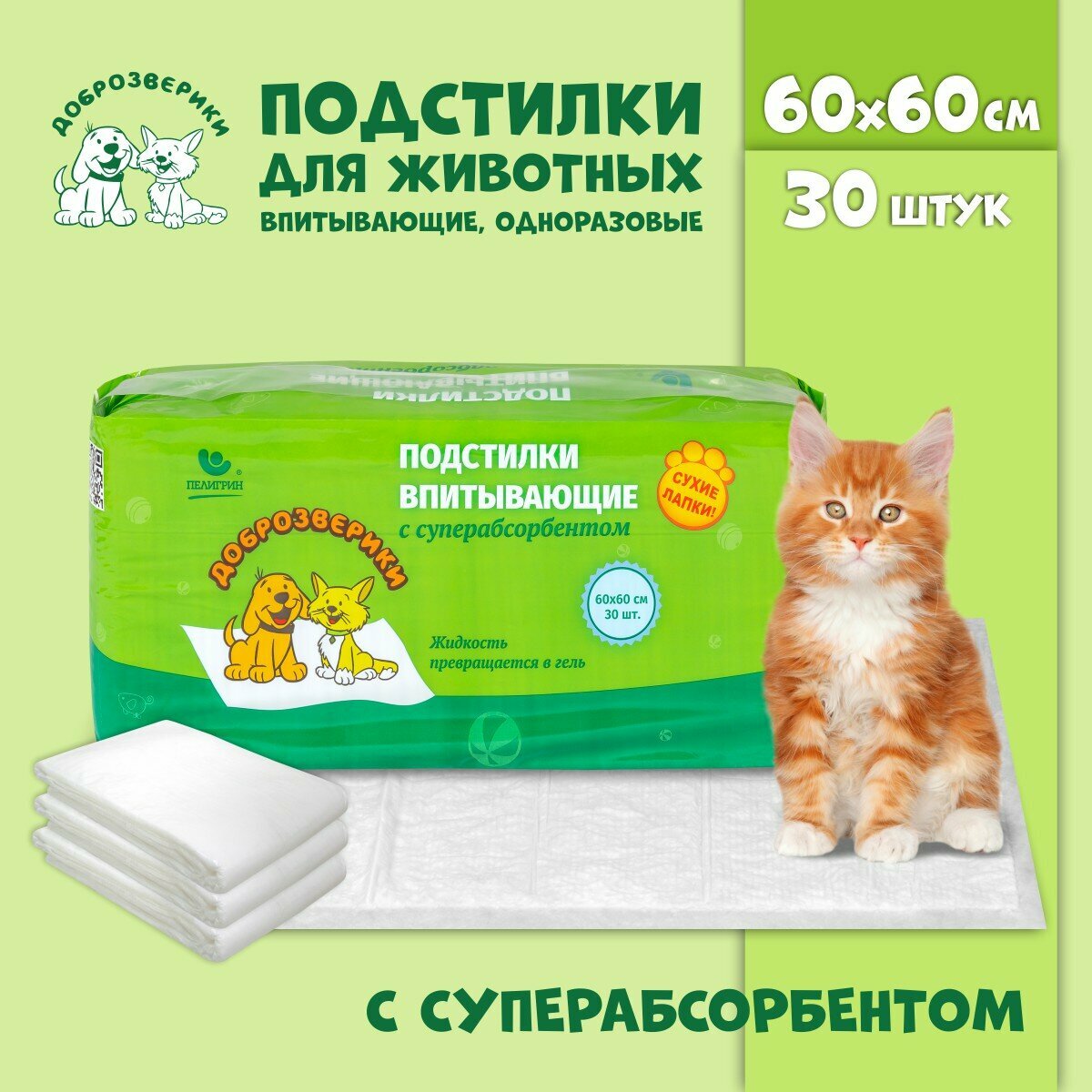 Пеленки для собак и кошек Пелигрин Доброзверики Super, размер 60х60см., 30 шт.