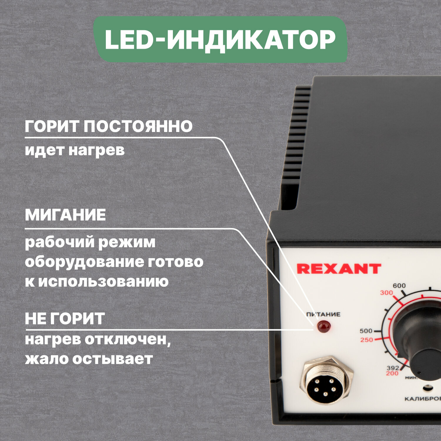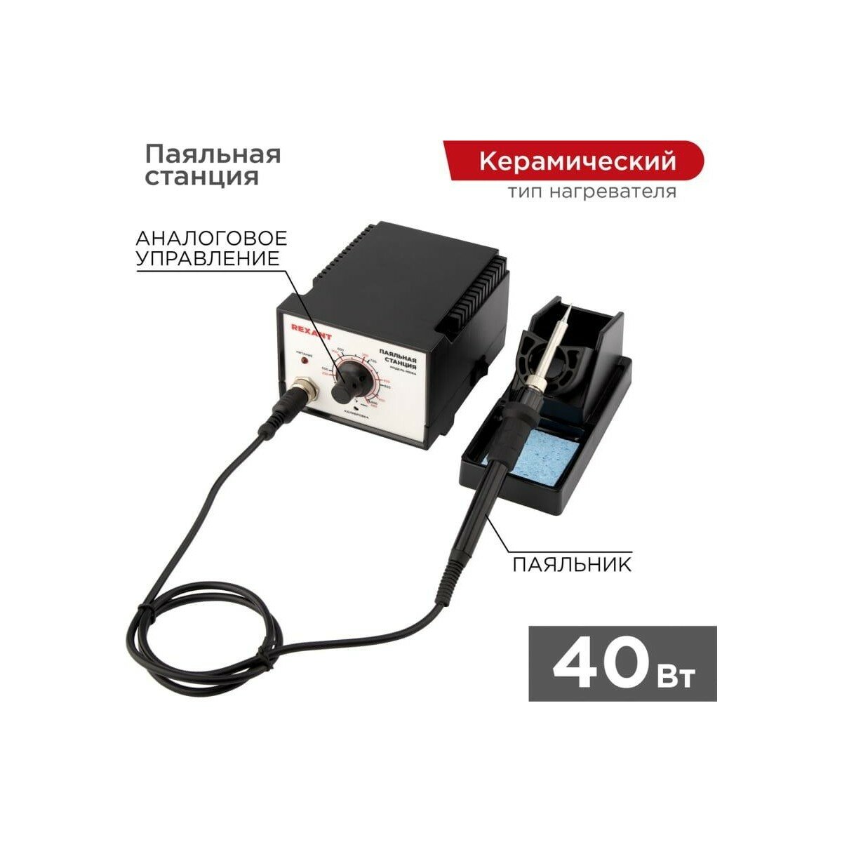 Аналоговая паяльная станция REXANT, паяльник с керамическим нагревателем, 200-480 градусов