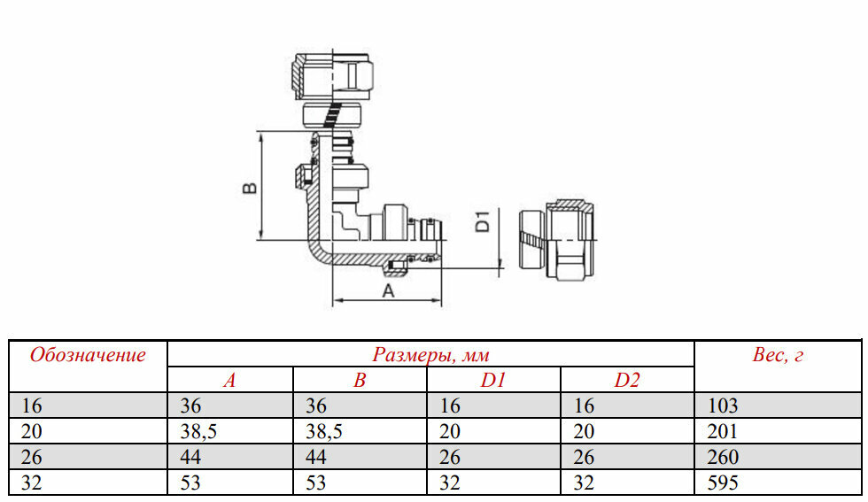 Фитинг обжимной – угольник Vtm.351.N.002020 20 мм