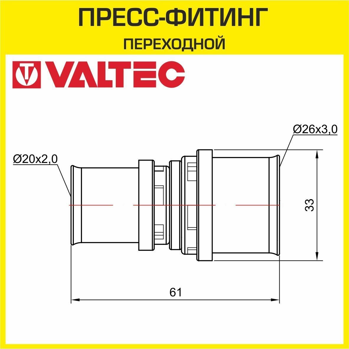 Пресс-фитинг VALTEC 26х16 мм прямой, арт. VTm.203.N.002616