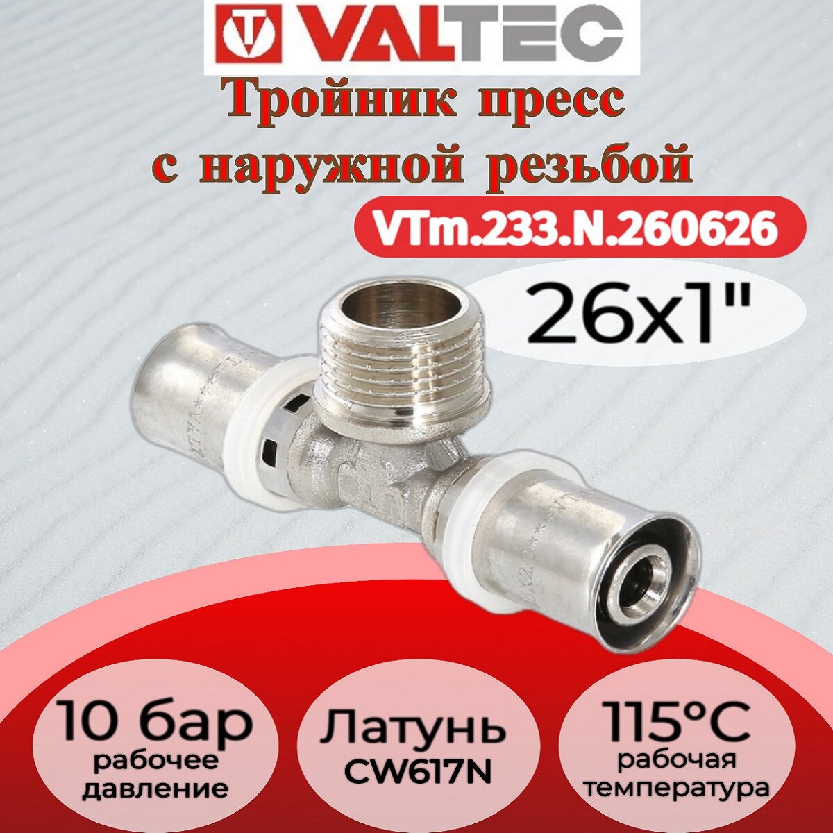 Тройник VALTEC VTm.233.N.260626 26x1"x26 пресс – резьба