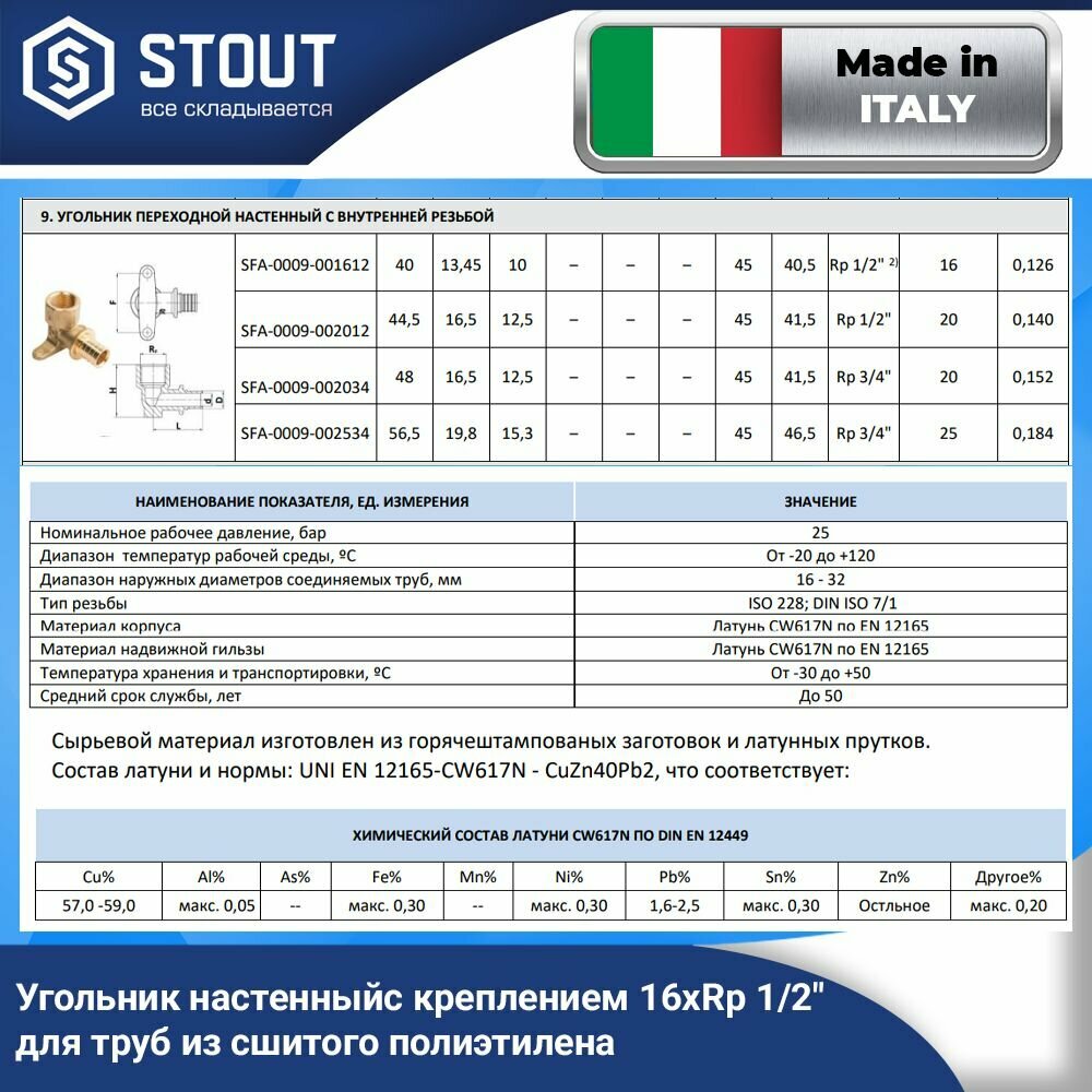 Stout Угольник настенный с креплением 16xRp 1/2" SFA-0009-001612 RG008P0UDA1EM3 .