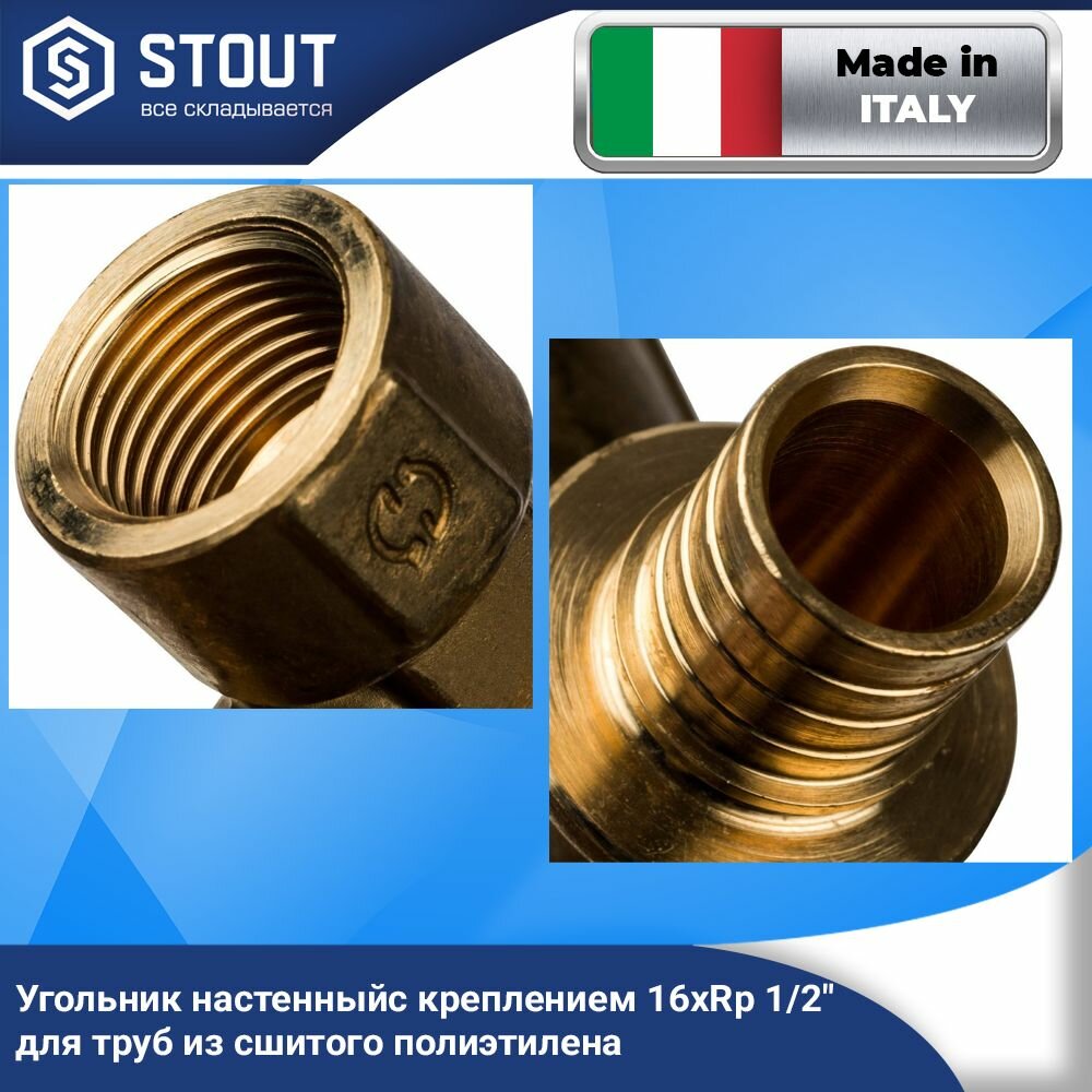 Stout Угольник настенный с креплением 16xRp 1/2" для труб из сшитого полиэтилена аксиальный