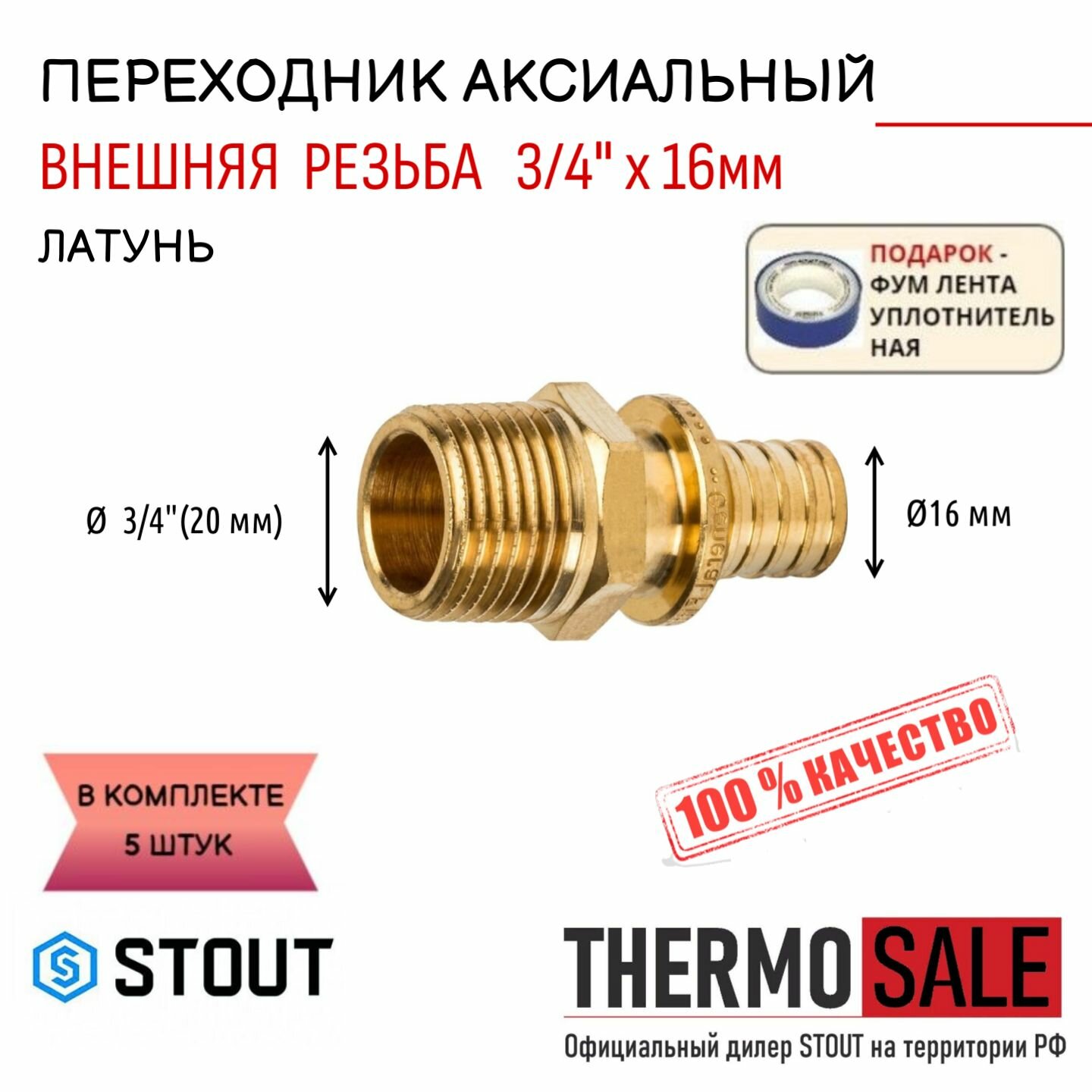 Ниже Вы можете прочитать отзывы на Переходник с НР 16xR 3/4" 5 шт для труб из сшитого полиэтилена аксиальный ФУМ лента, ознакомится с подробными характеристиками, посмотреть интересные обзоры и фотографии на Переходник с НР 16xR 3/4" 5 шт для труб из сшитого полиэтилена аксиальный ФУМ лента.