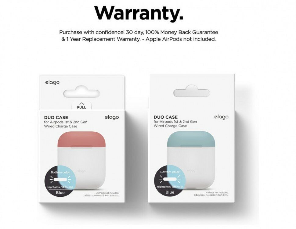 Elago для AirPods чехол Hang DUO case Nightglow Pearl с крышками Rose и Coral blue