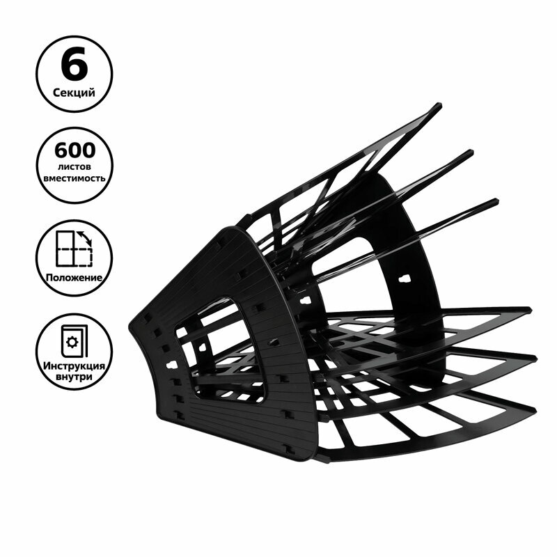 СохранитьЛоток для бумаг веерный СТАММ "Эконом", 6-ти секционный, черный интересное: