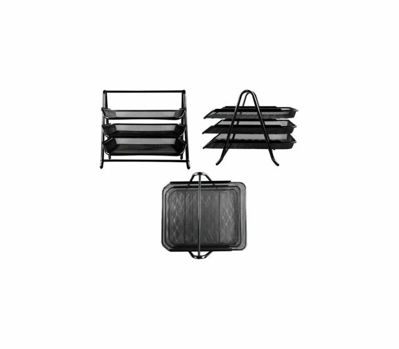 Лоток для бумаг горизонтальный, 3 отделения Germanium, металлическая сетка, чёрный