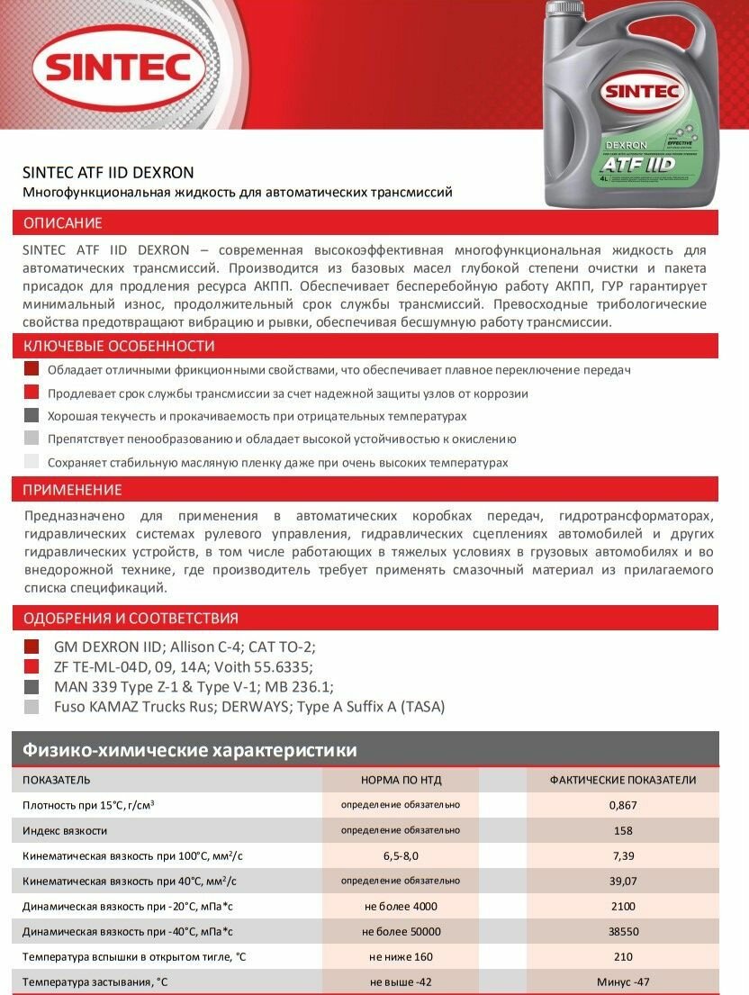 Sintec Atf Dii (1л) Для Автоматической Трасмиссиии SINTEC арт. 900259