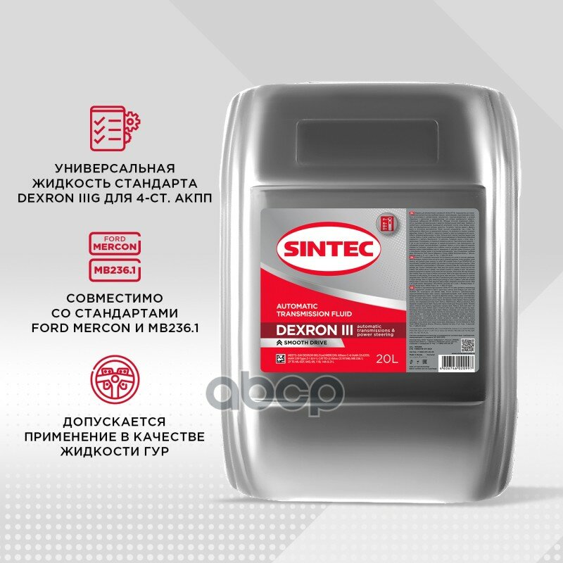 Ниже Вы можете прочитать отзывы на Масло трансмиссионное SINTEC минеральное ATF III Dexron, 20 л, ознакомится с подробными характеристиками, посмотреть интересные обзоры и фотографии на Масло трансмиссионное SINTEC минеральное ATF III Dexron, 20 л.