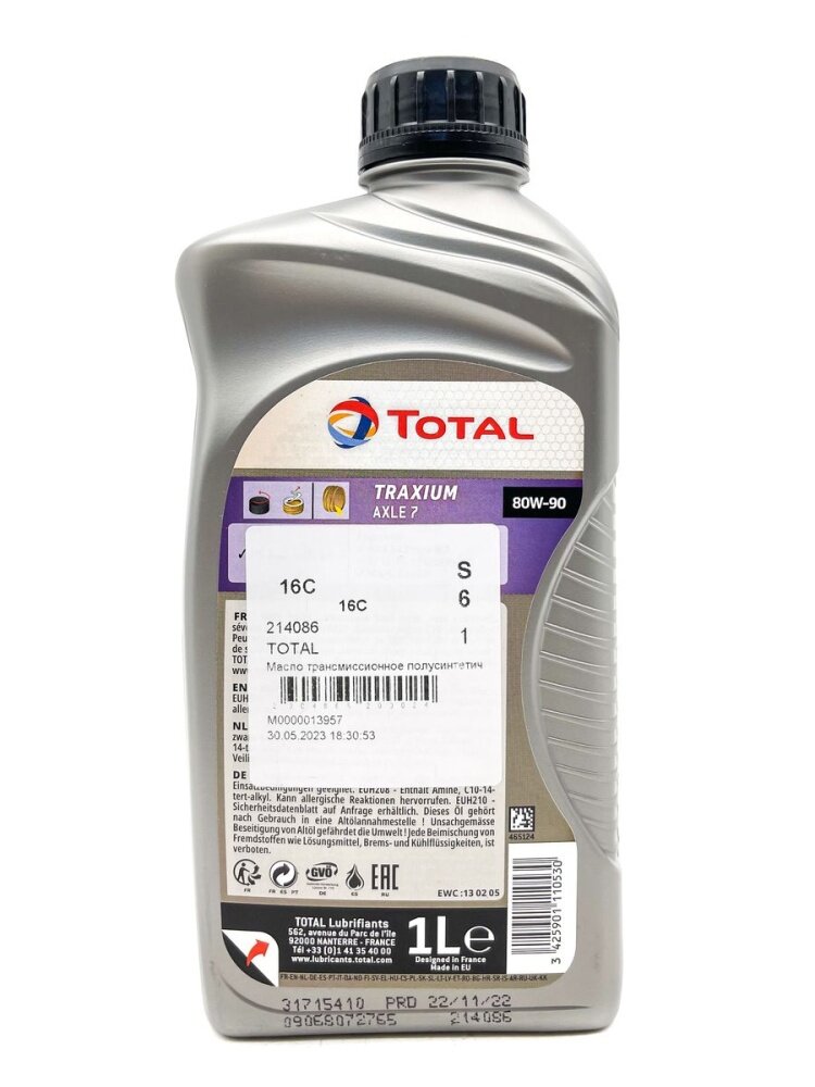 Total Traxium Axle 7 80w90 (1l)_масло Трансмиссионное Мин.! Api Gl-5, Mil-L-2105d TotalEnergies арт. 214086