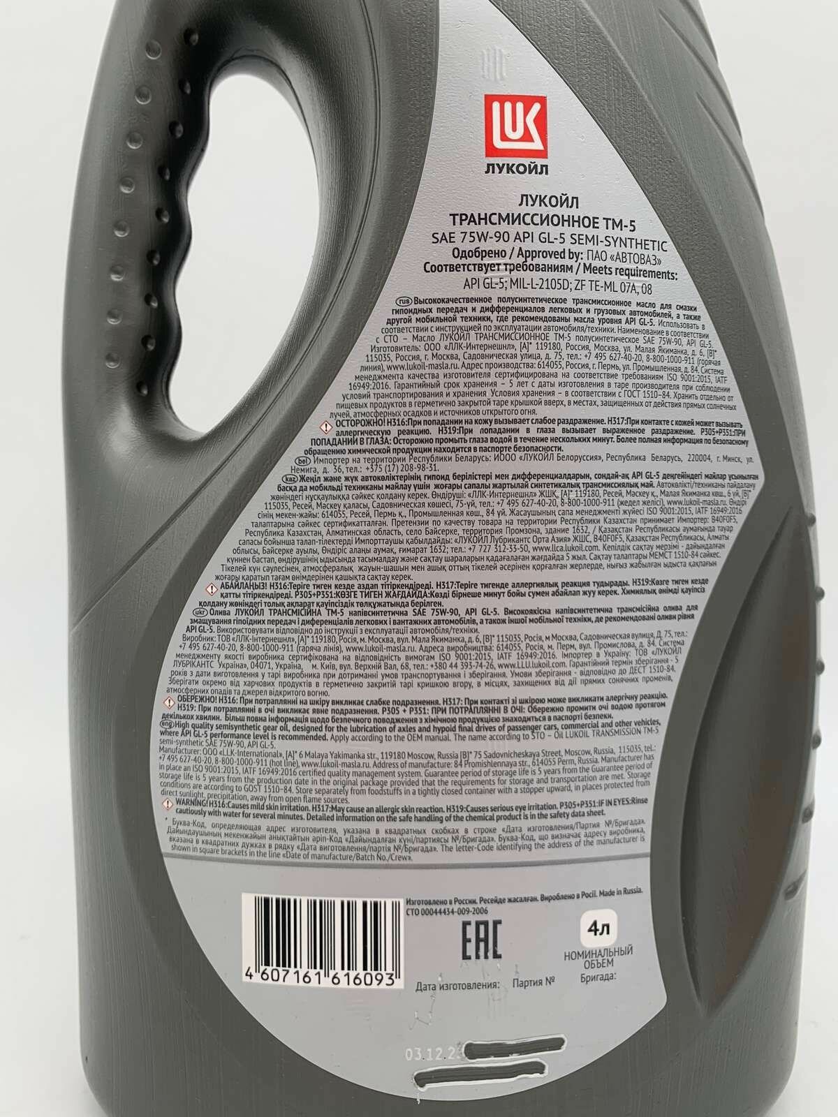 75/90 ТМ-5 Лукойл 216,5л. (175кг.) п/синт. API GL-5 Масло трансмиссионное LLCH Китай LUKOIL 3495319 | цена за 1 шт