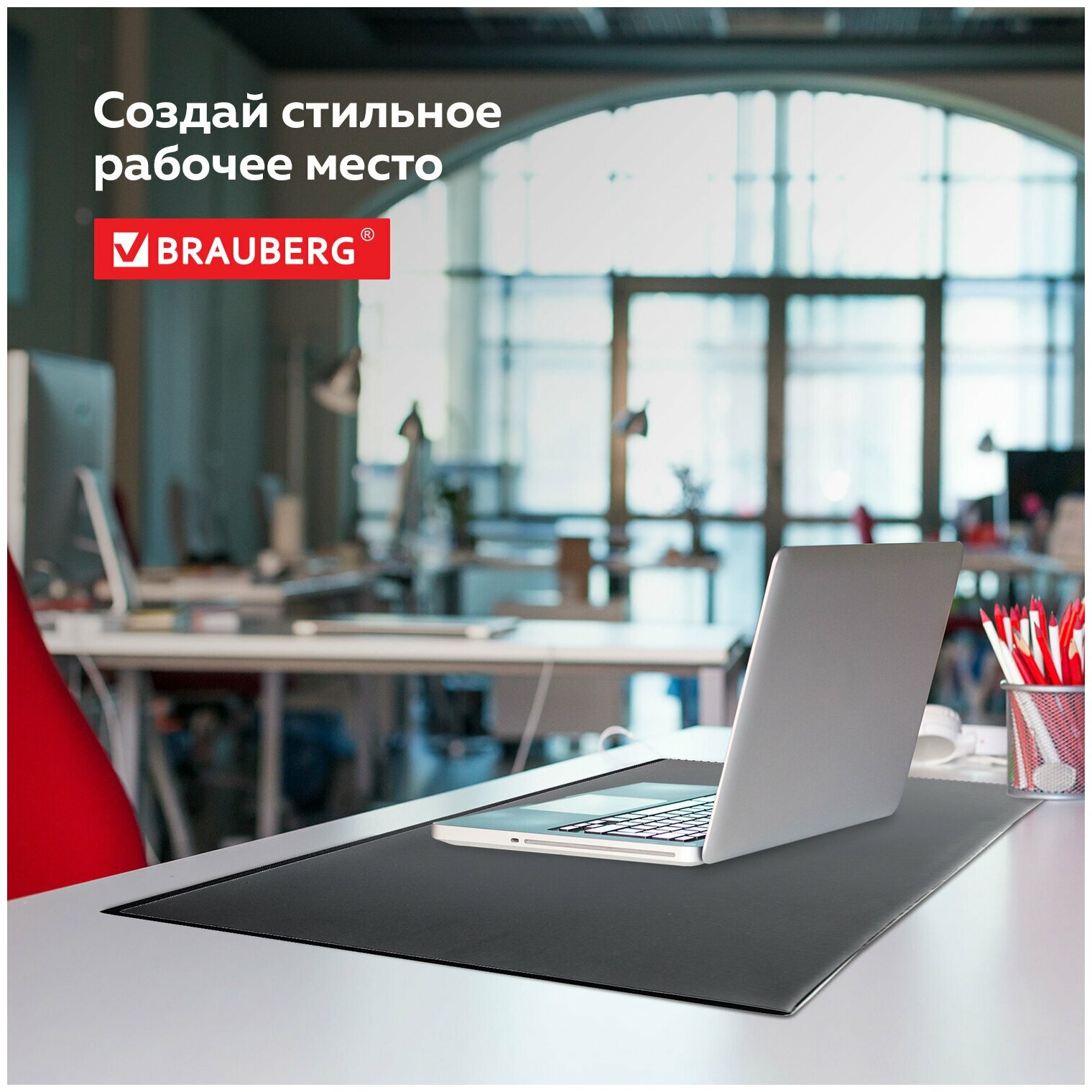Коврик-подкладка настольный для письма (590х380 мм), с прозрачным карманом, черный, BRAUBERG, 236774 Комплект : 1 шт .
