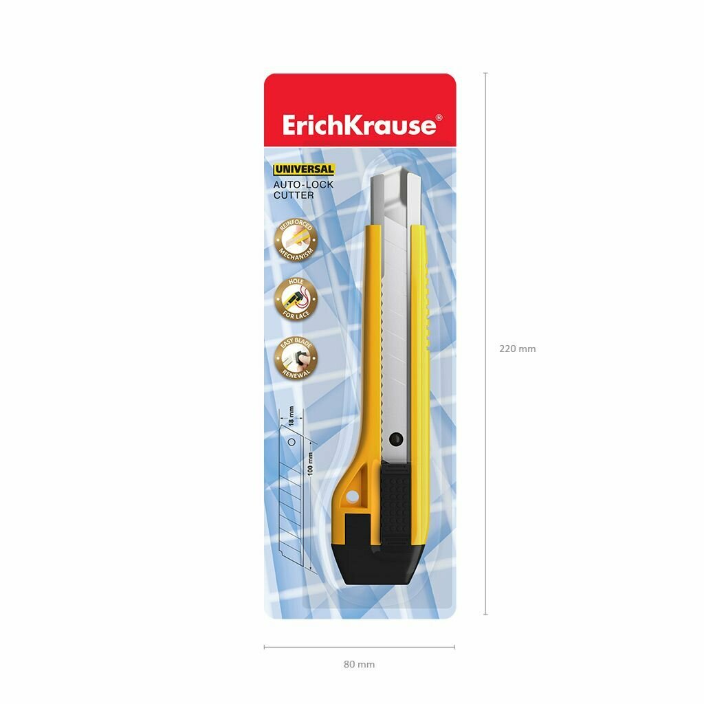 Купить Нож канцелярский Erich Krause UNIVERSAL auto-lock, 18 мм, желтый