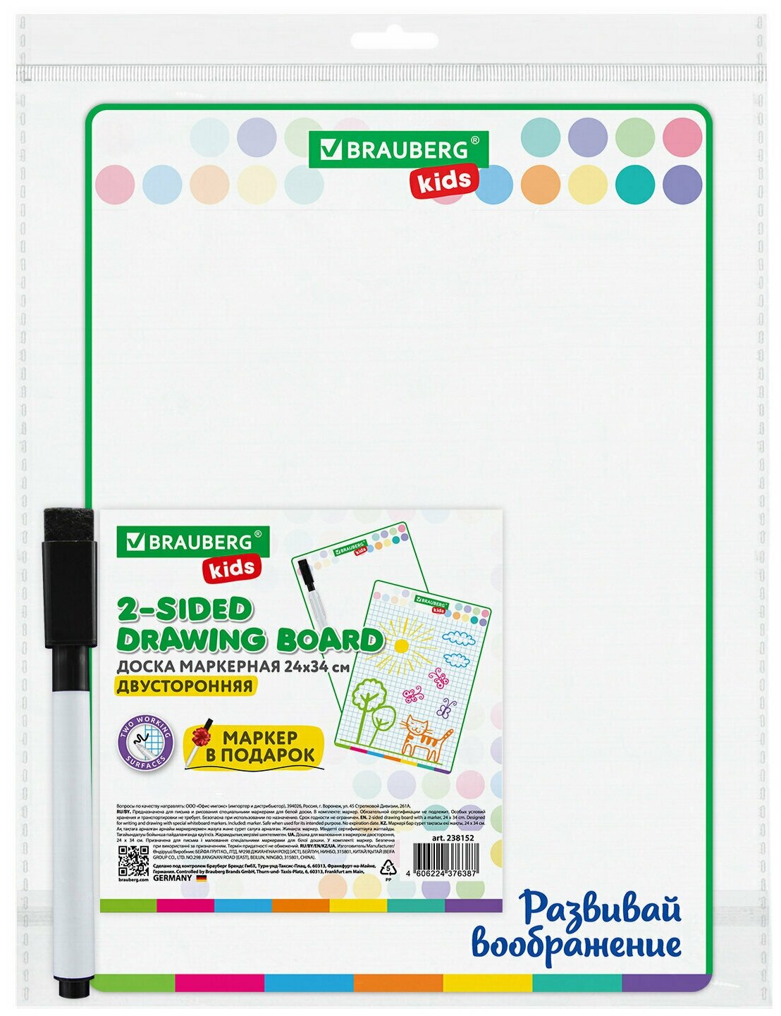 Купить Доска для рисования с маркером двухсторонняя, в клетку/белая, 24х34 см (А4), BRAUBERG KIDS, 238152