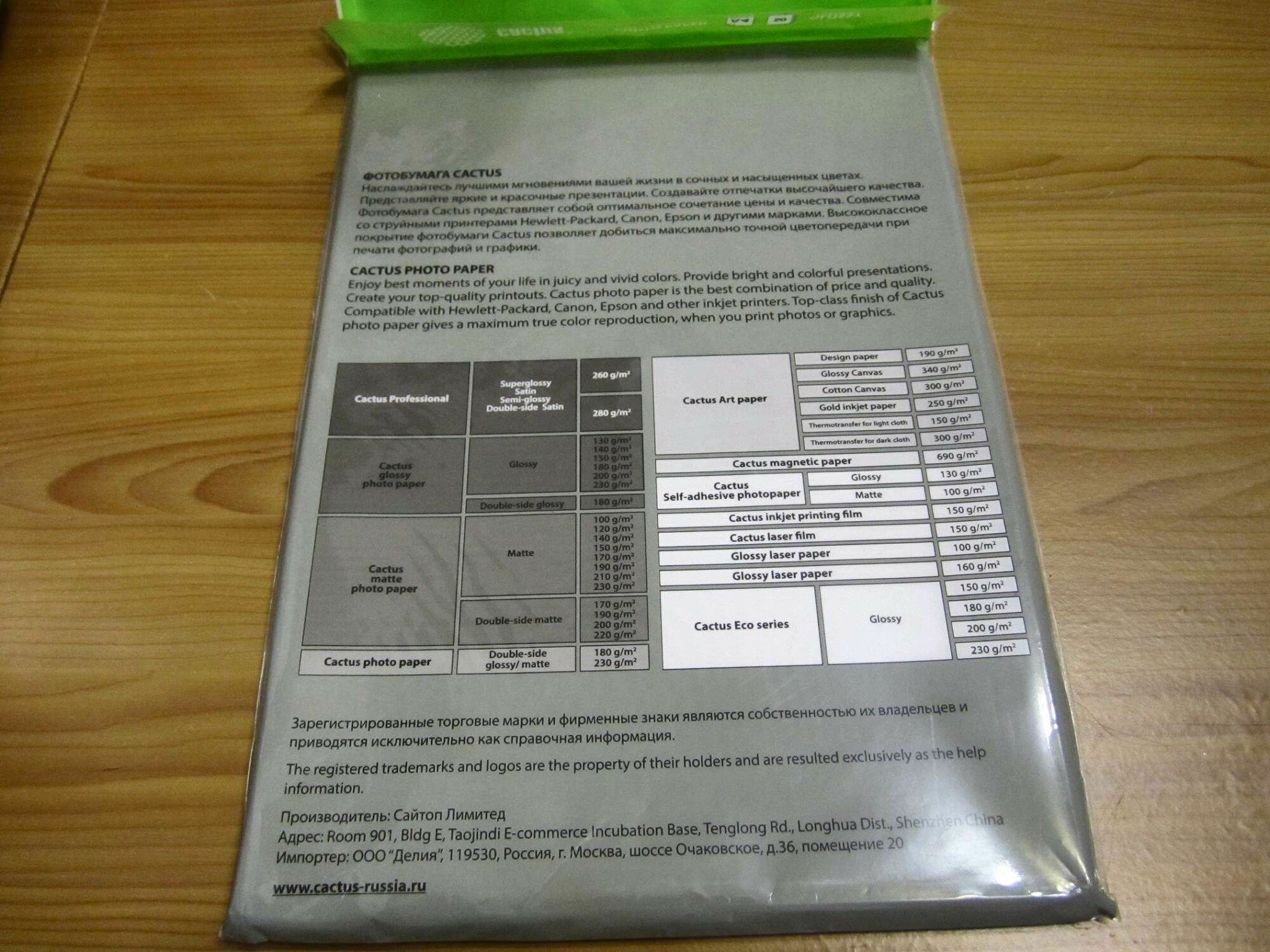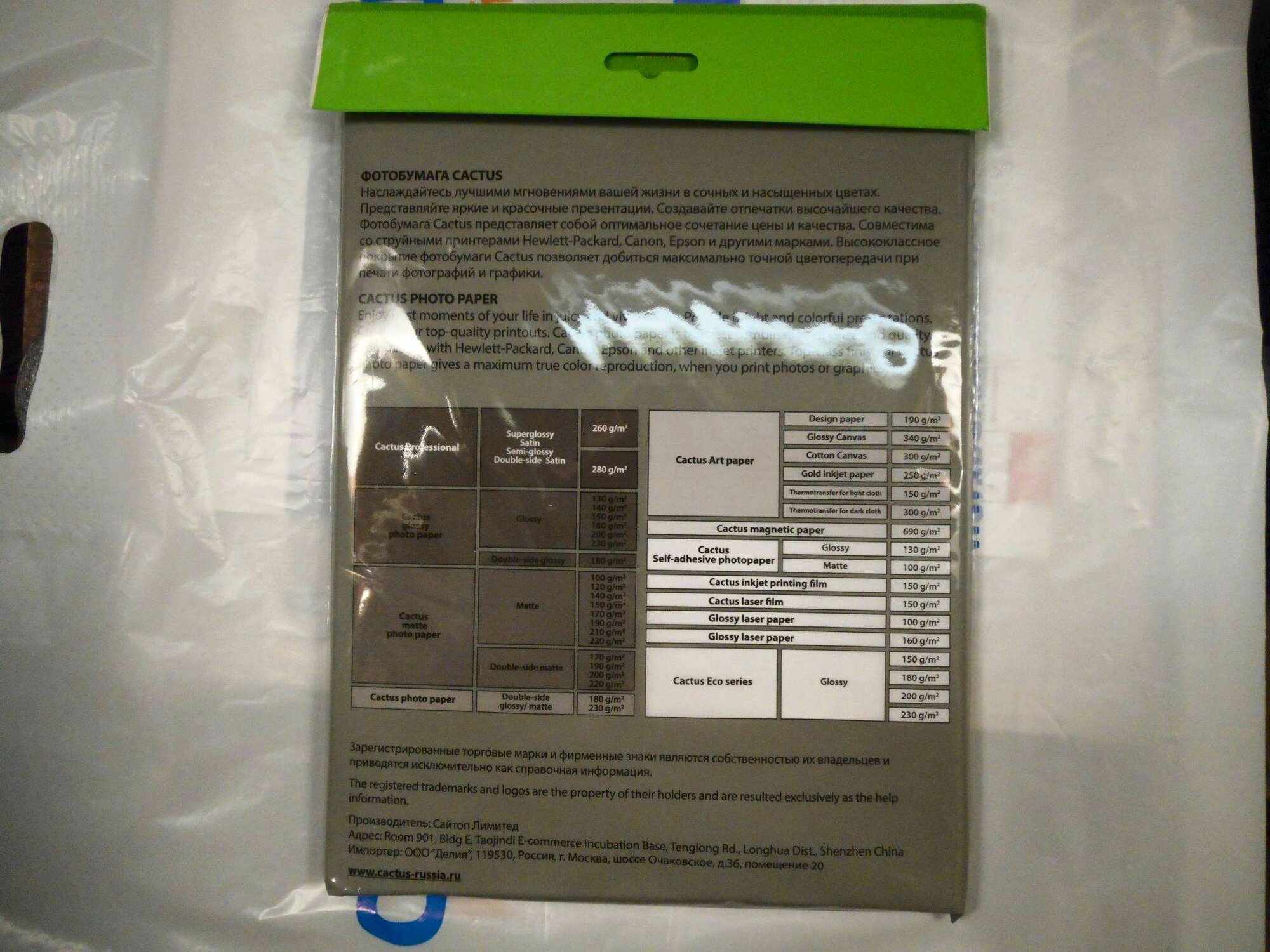 Ниже Вы можете прочитать отзывы на Фотобумага Cactus CS-GA423050ED формат A4, плотность 230г/м2, 50 листов, односторонняя, покрытие глянцевое, для струйной печати, белый, ознакомится с подробными характеристиками, посмотреть интересные обзоры и фотографии на Фотобумага Cactus CS-GA423050ED формат A4, плотность 230г/м2, 50 листов, односторонняя, покрытие глянцевое, для струйной печати, белый.