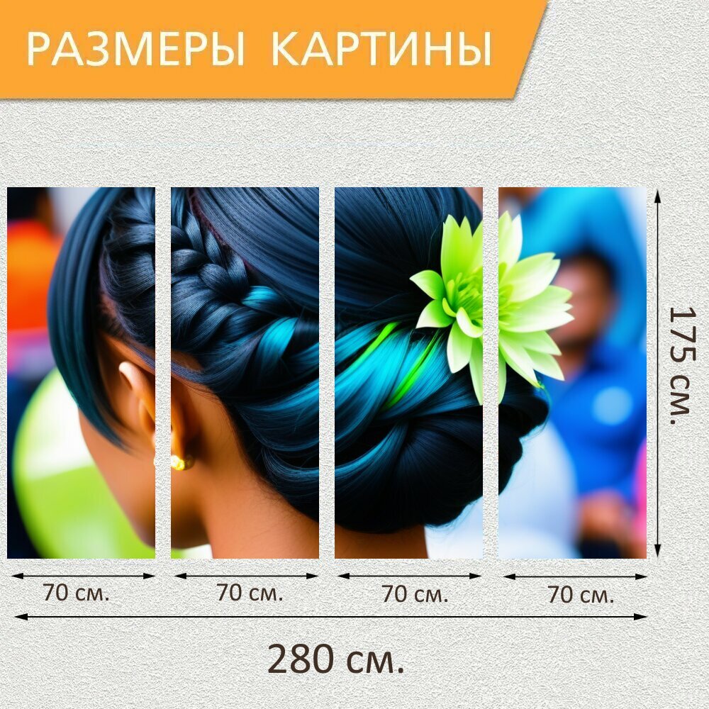 Модульная картина на холсте в парикмахерскую "Прическа для летнего праздника , " триптих на подрамнике 280х175 см. для интерьера интересное: