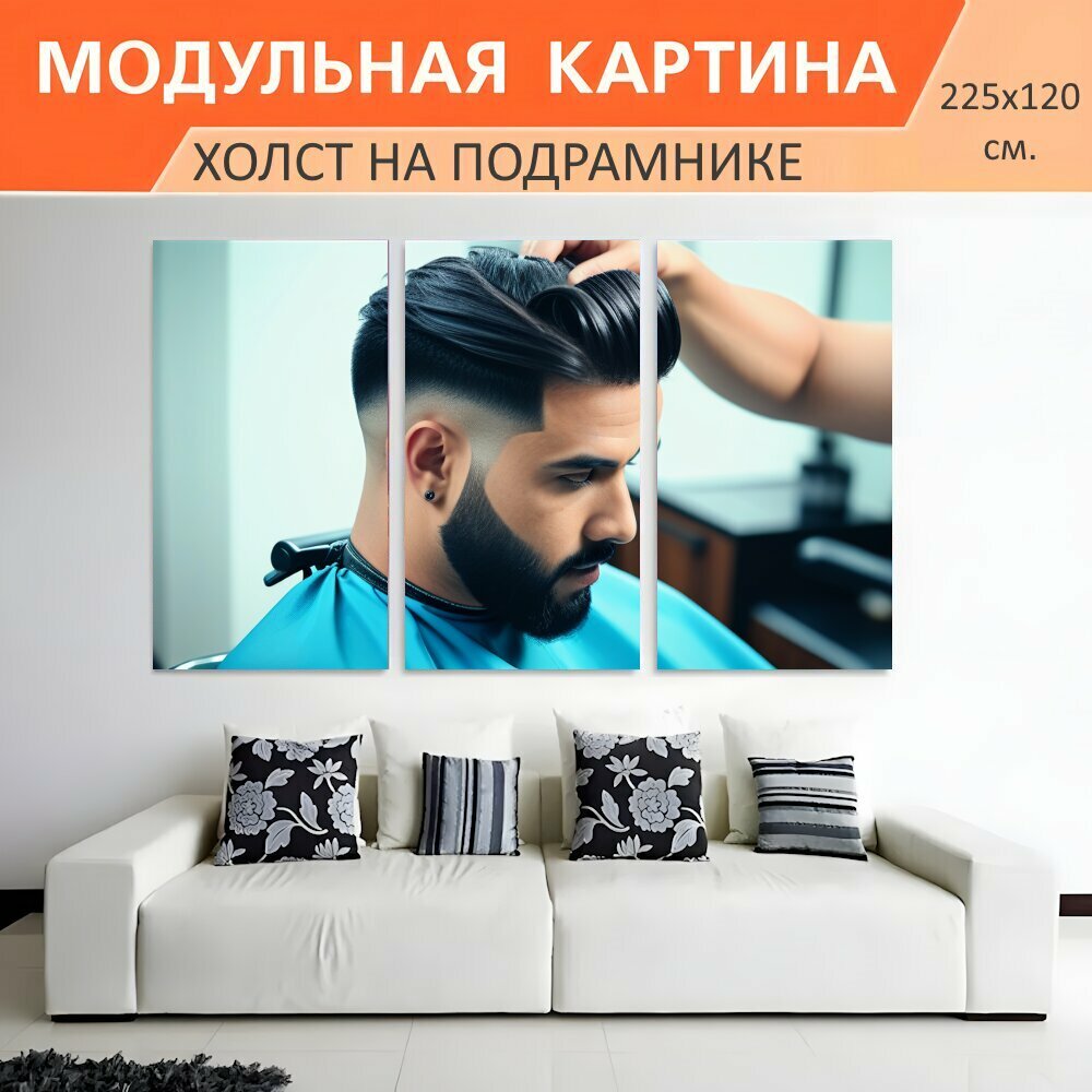 Модульная картина на холсте в парикмахерскую "Поэзия стрижеству , " триптих на подрамнике 225х120 см. для интерьера интересное: