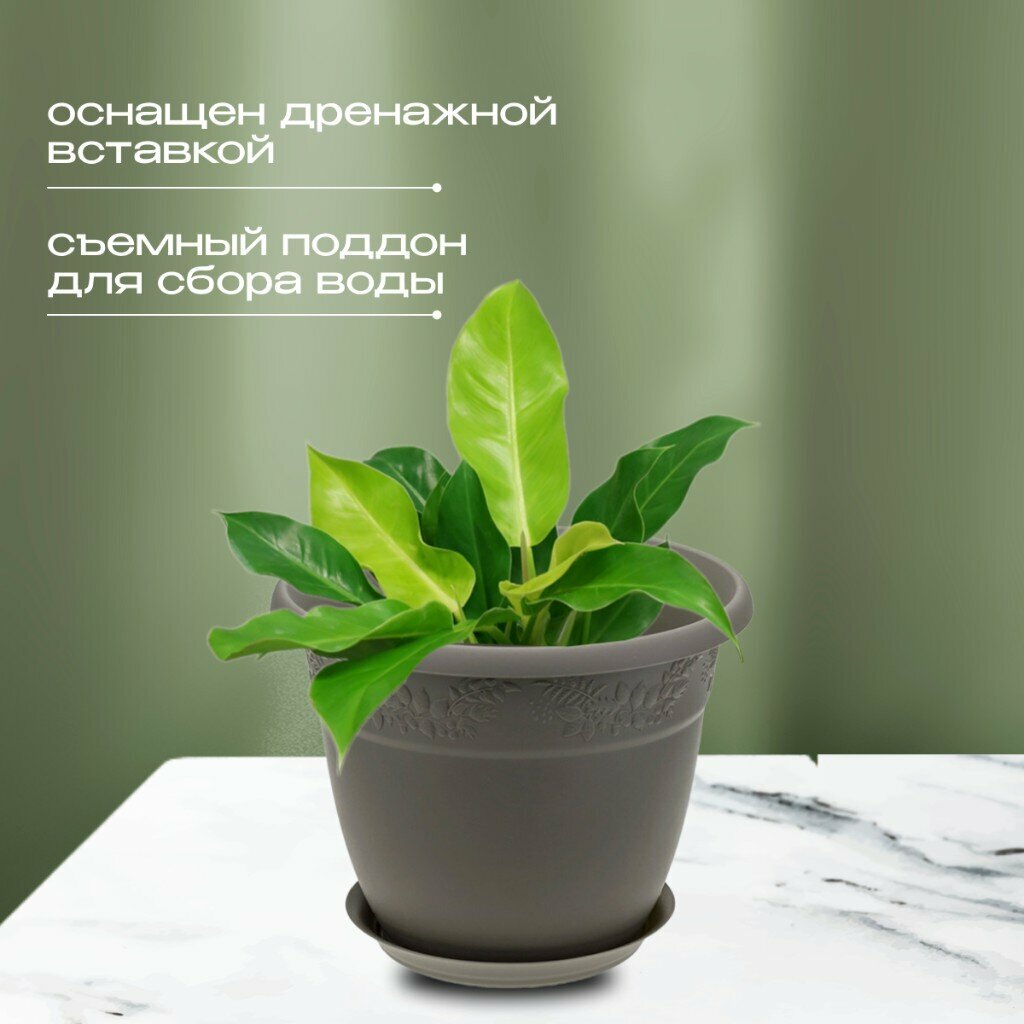 Кашпо IDEA "Рябина" с поддоном, диаметр 22 см, объем 3,6 л, французский серый, М 3055